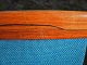 Et sæt på 4 stole i palisander med turkis stofbetræk på ryg og sæder