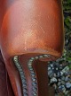 Stolen fremstår med patina og enkelte ridser på læderet ved armlæn.
