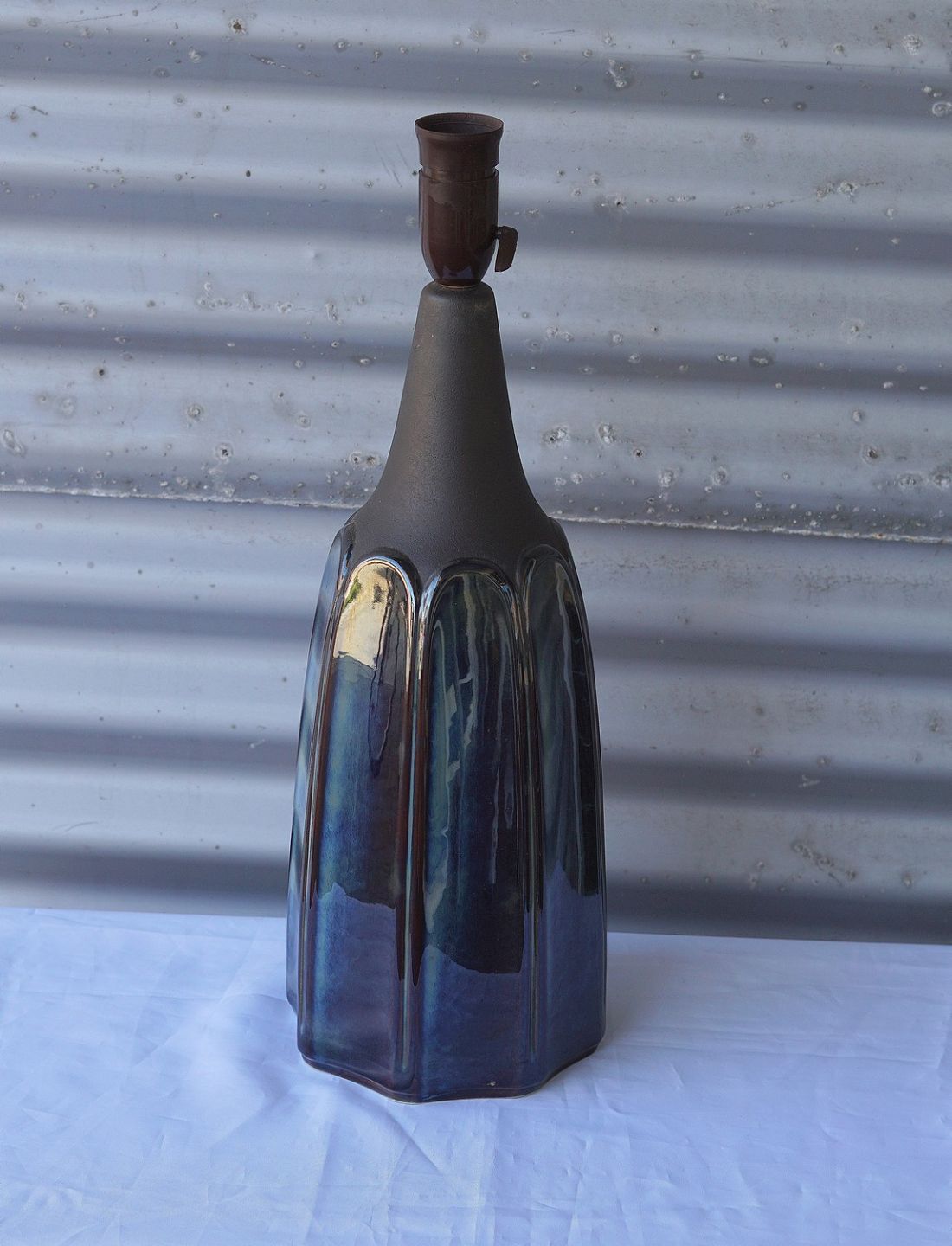 Blåglaseret bordlampe, Søholm (1042). Lampen er lavet af keramik