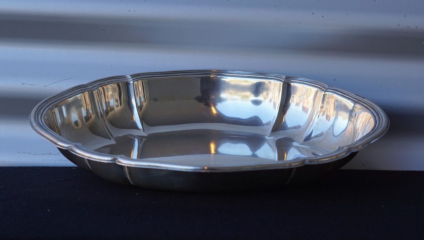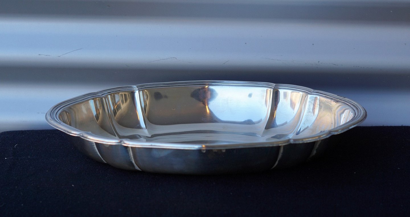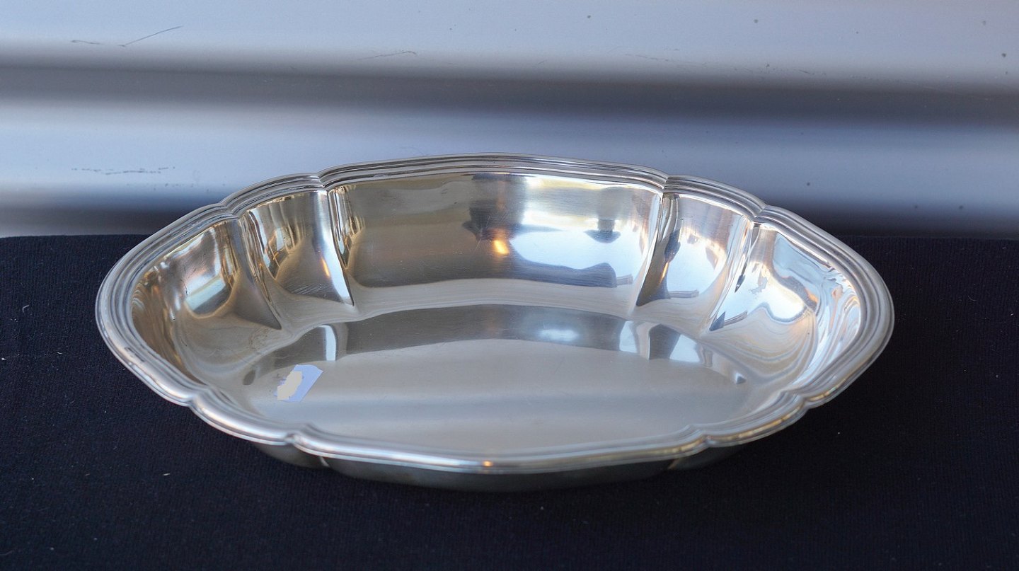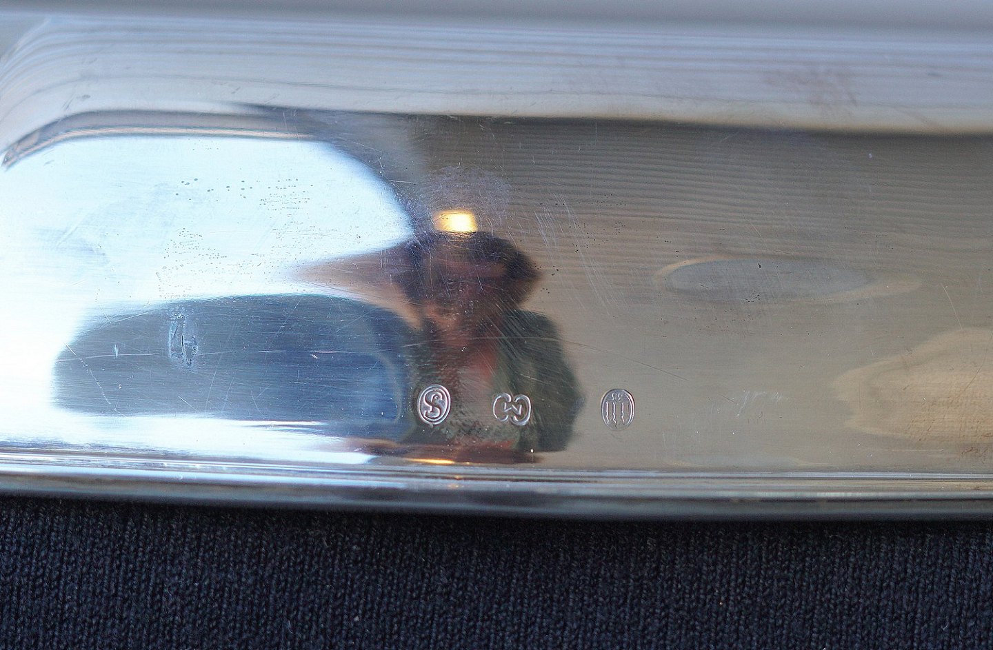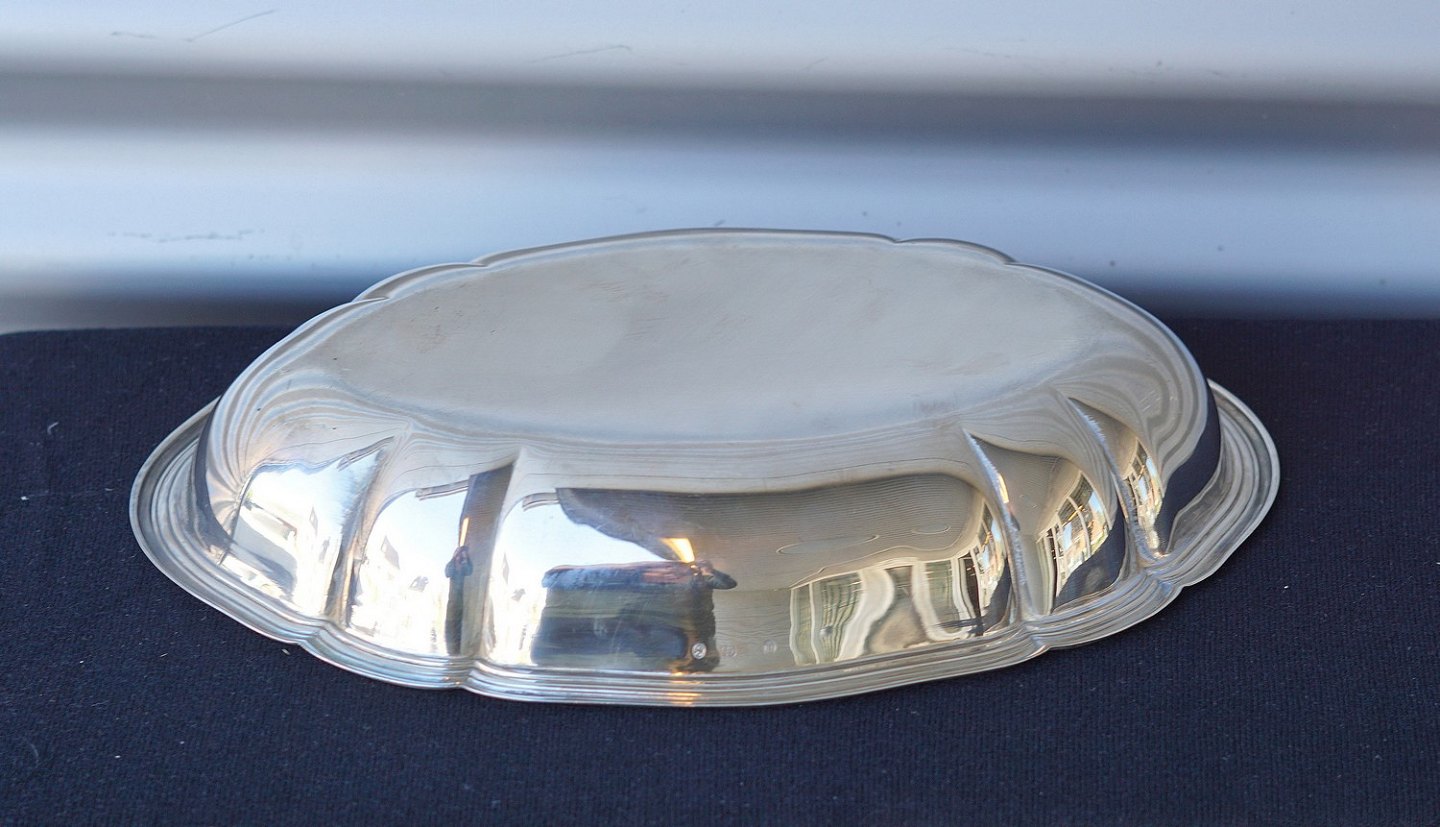3-tårnet ligeknækket rokokofad, fremstillet 1935, sølv 830