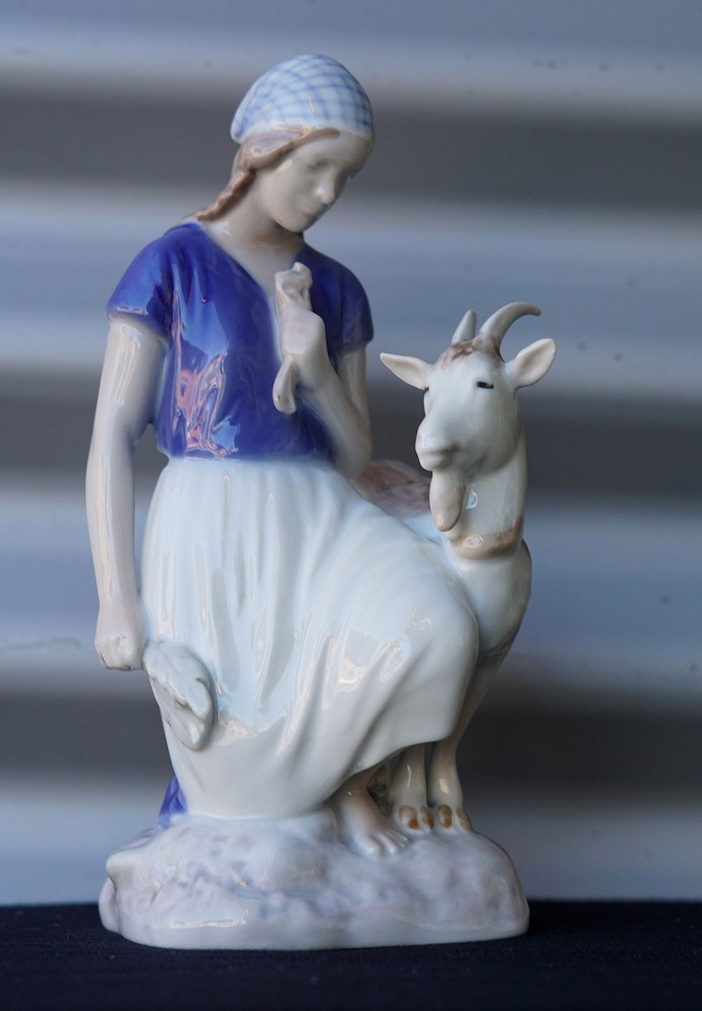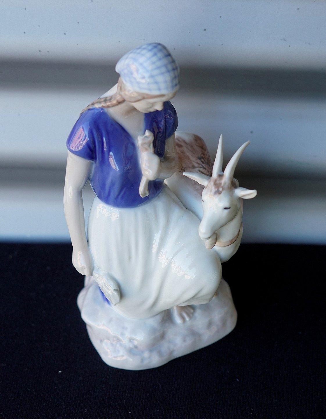 Figur i porcelæn med motiv af pige med ged. Nr. 2180