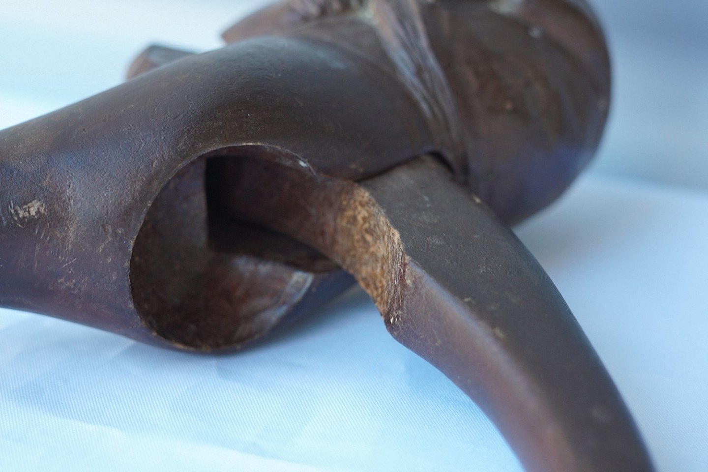 Nissehoved lavet som nøddeknækker, nødderknækkeren frem står med patina
