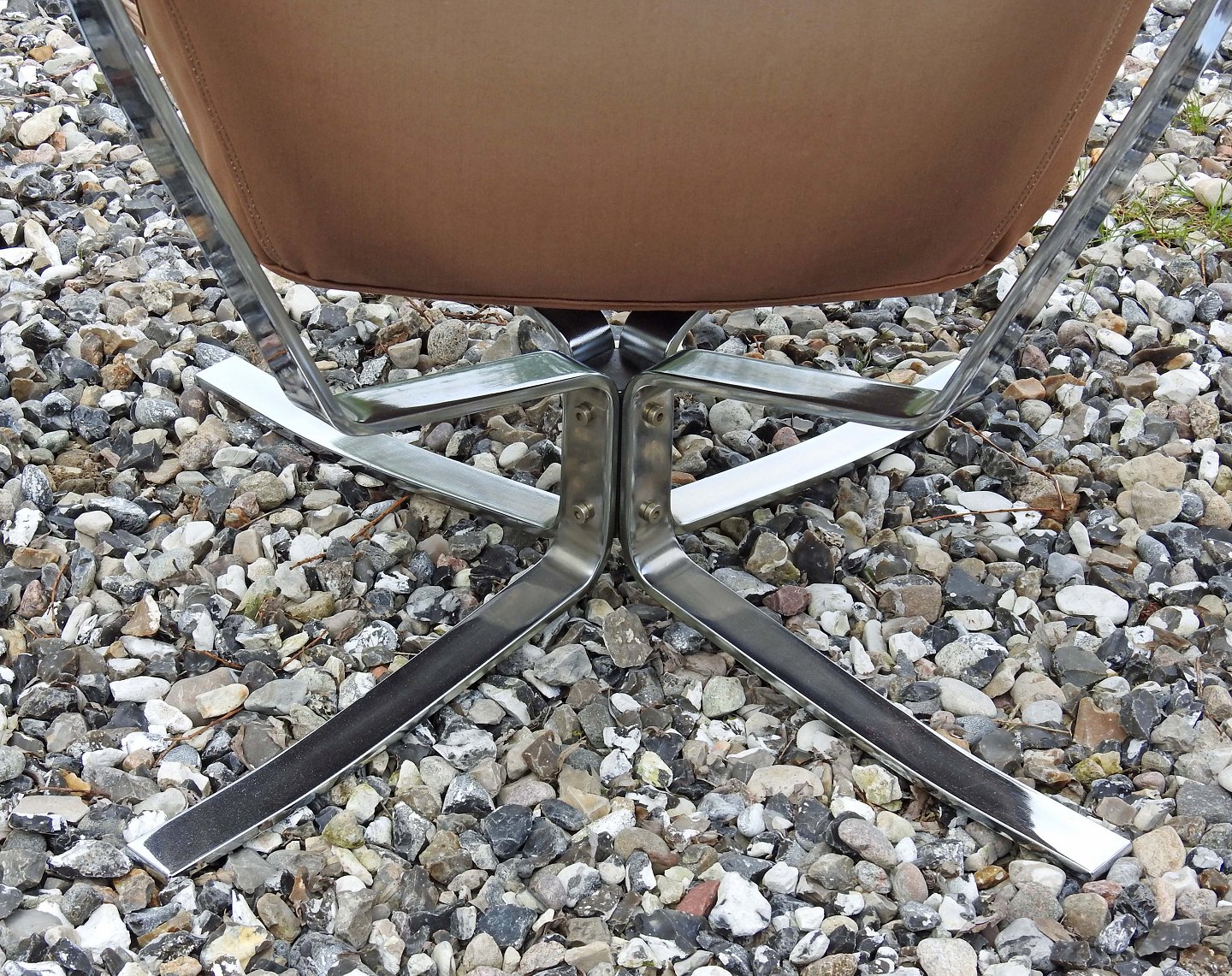 Et sæt Falcon stole og skammel i stel af krom og hynder i grønbrun patineret læder