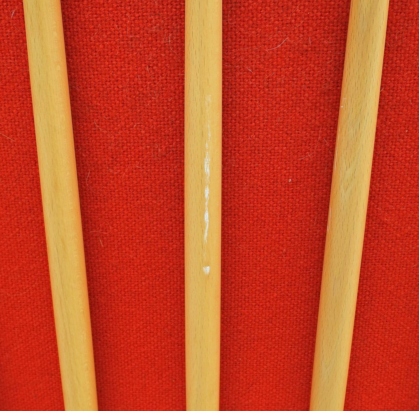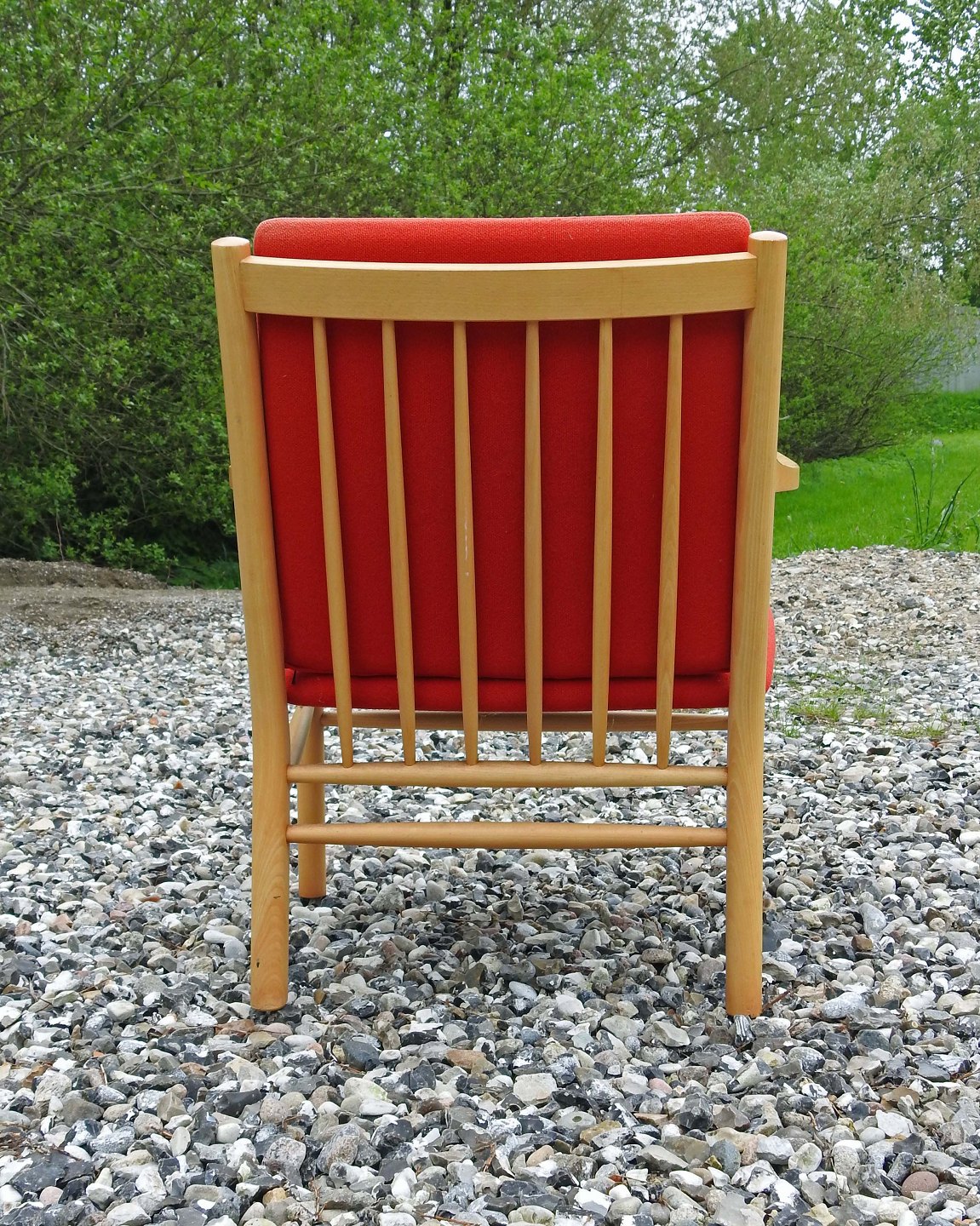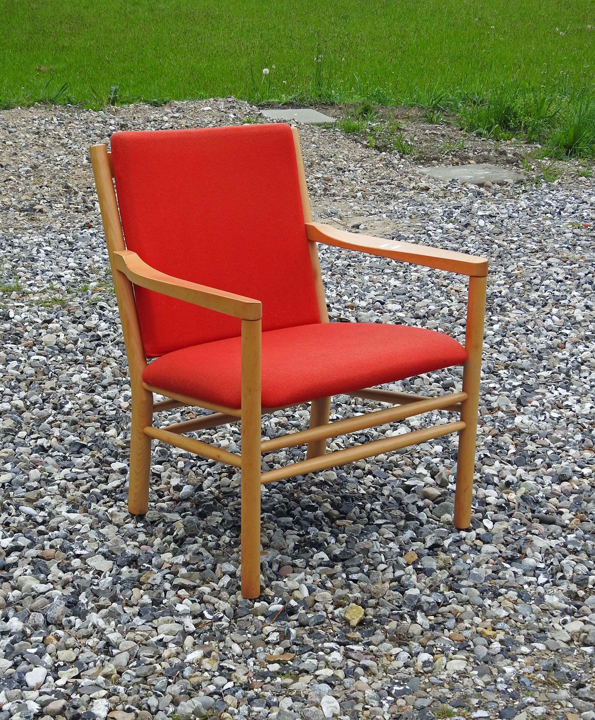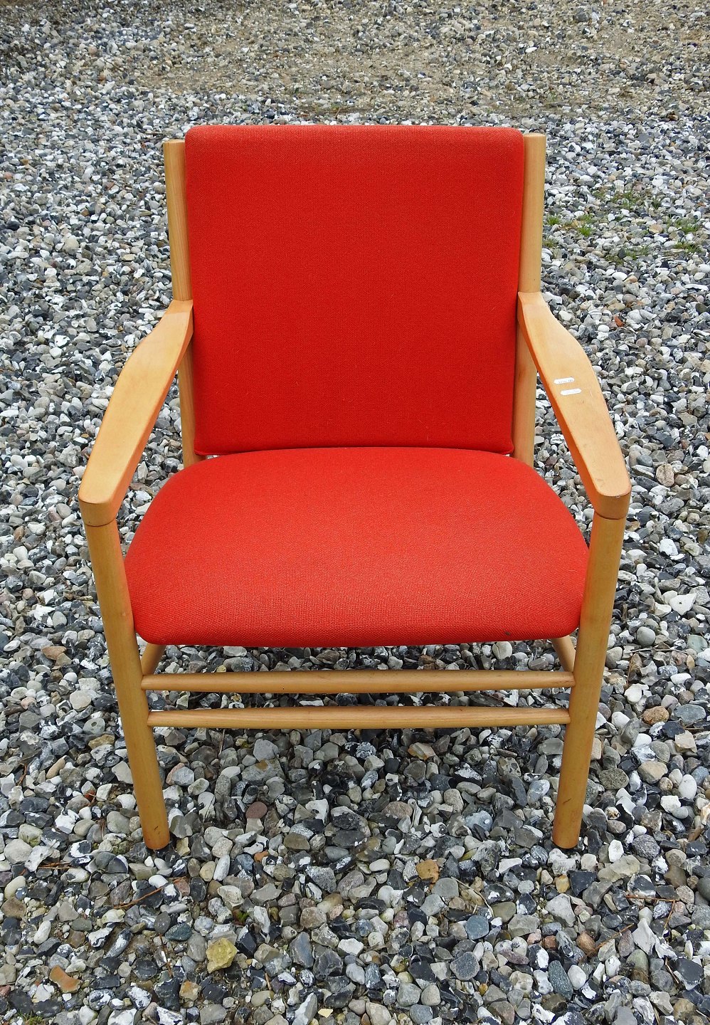 Armstol med stel af lakeret bøgetræ og polstret med rødt uldstof