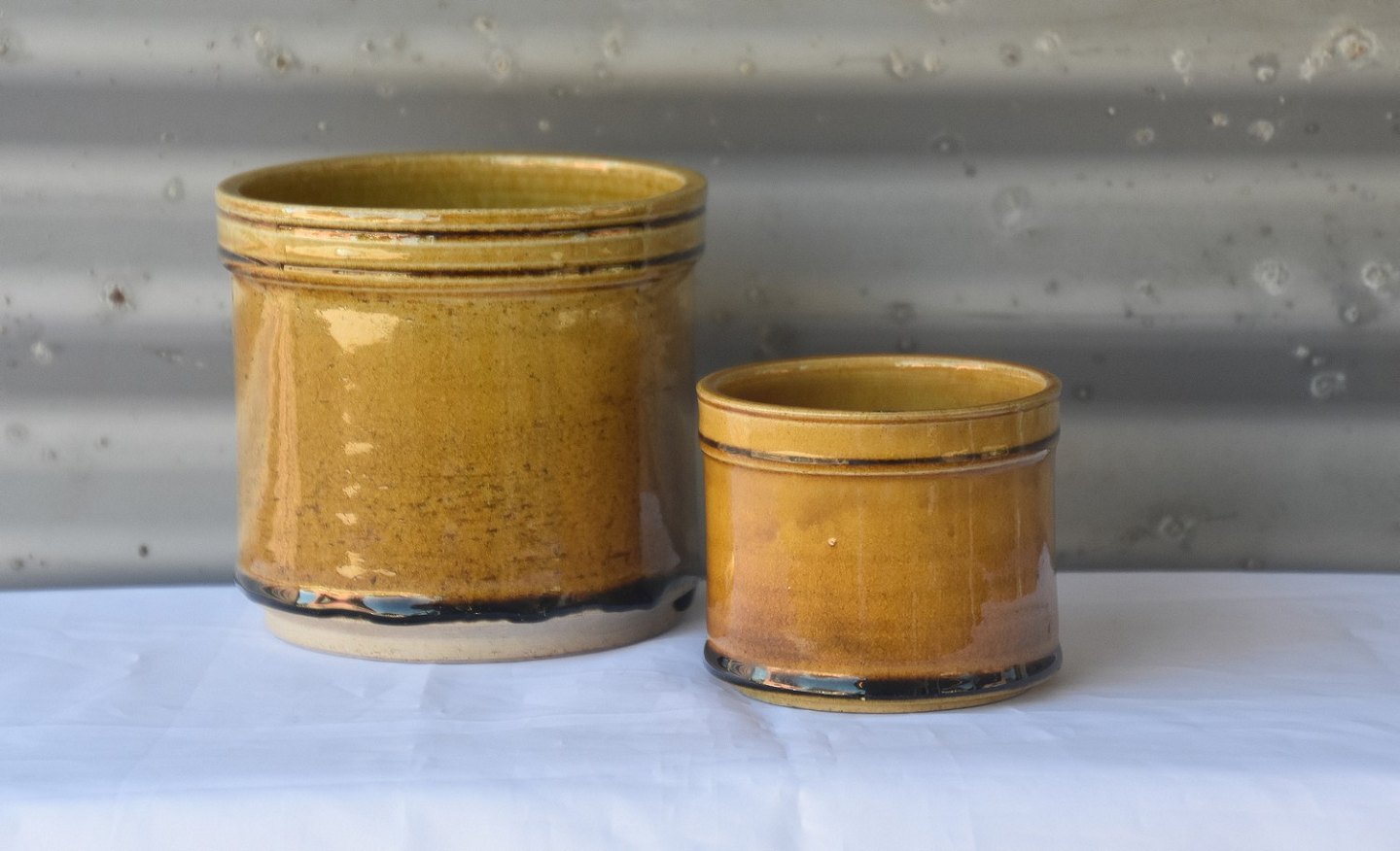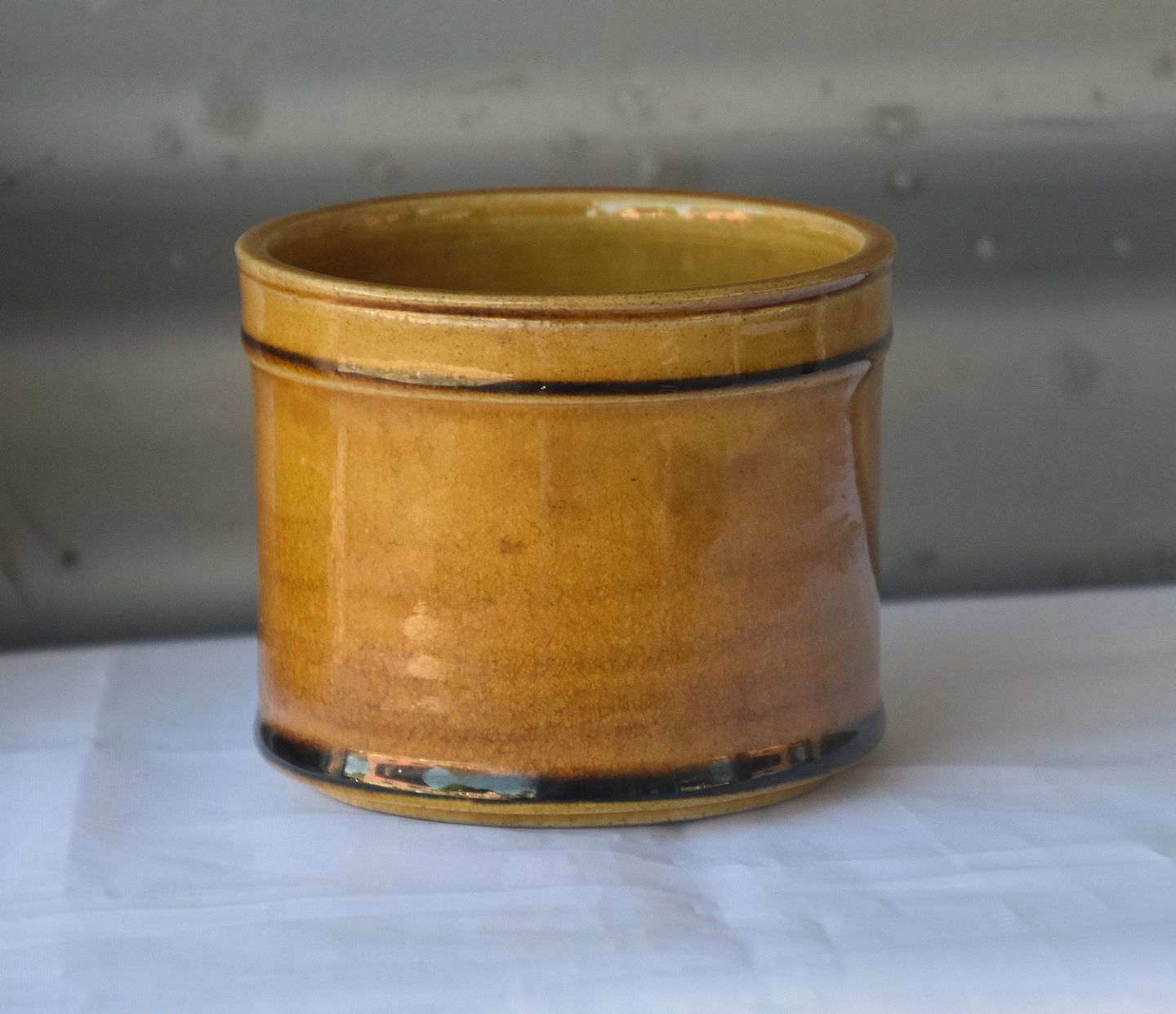 Keramik urtepotteskjuler i smuk gylden og varm glasur (401-09)