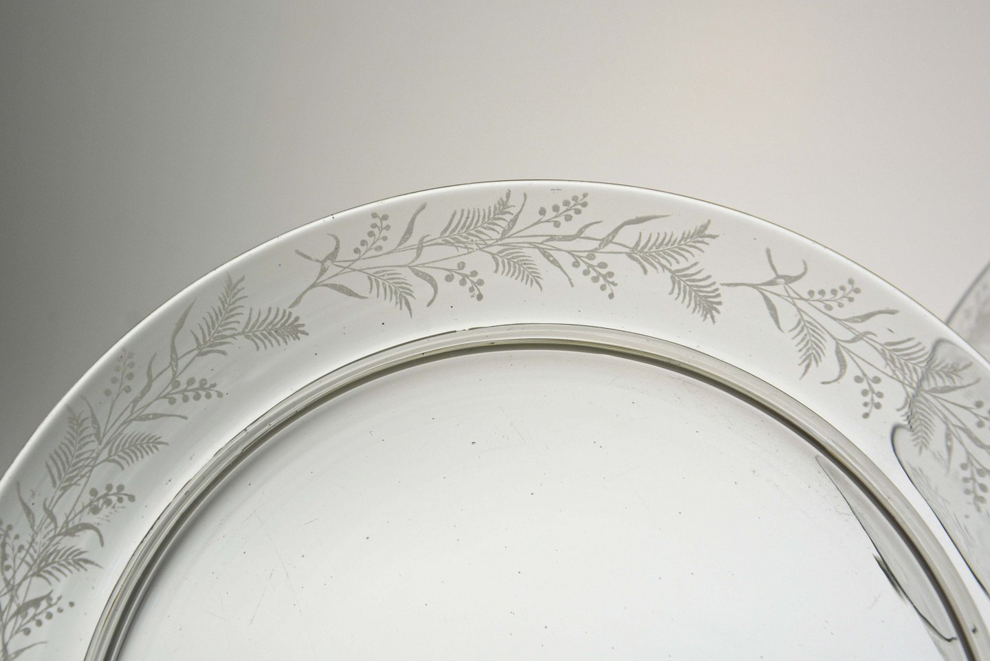 Osteklokke i glas med motiv af rådyr og skov fra Kastrup Glasværk ca. 1910. ætset motiv.