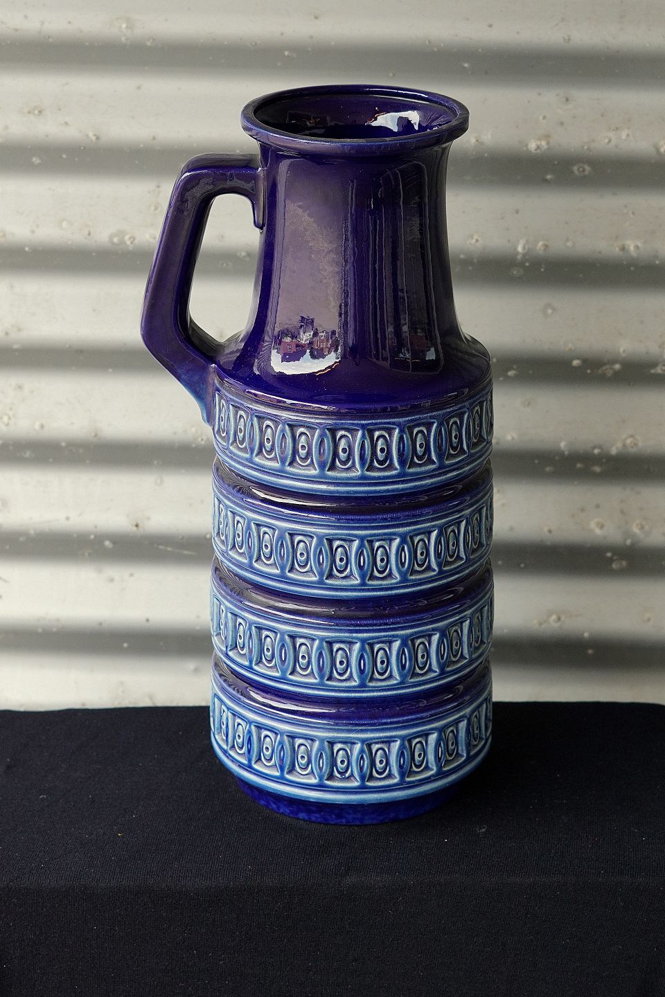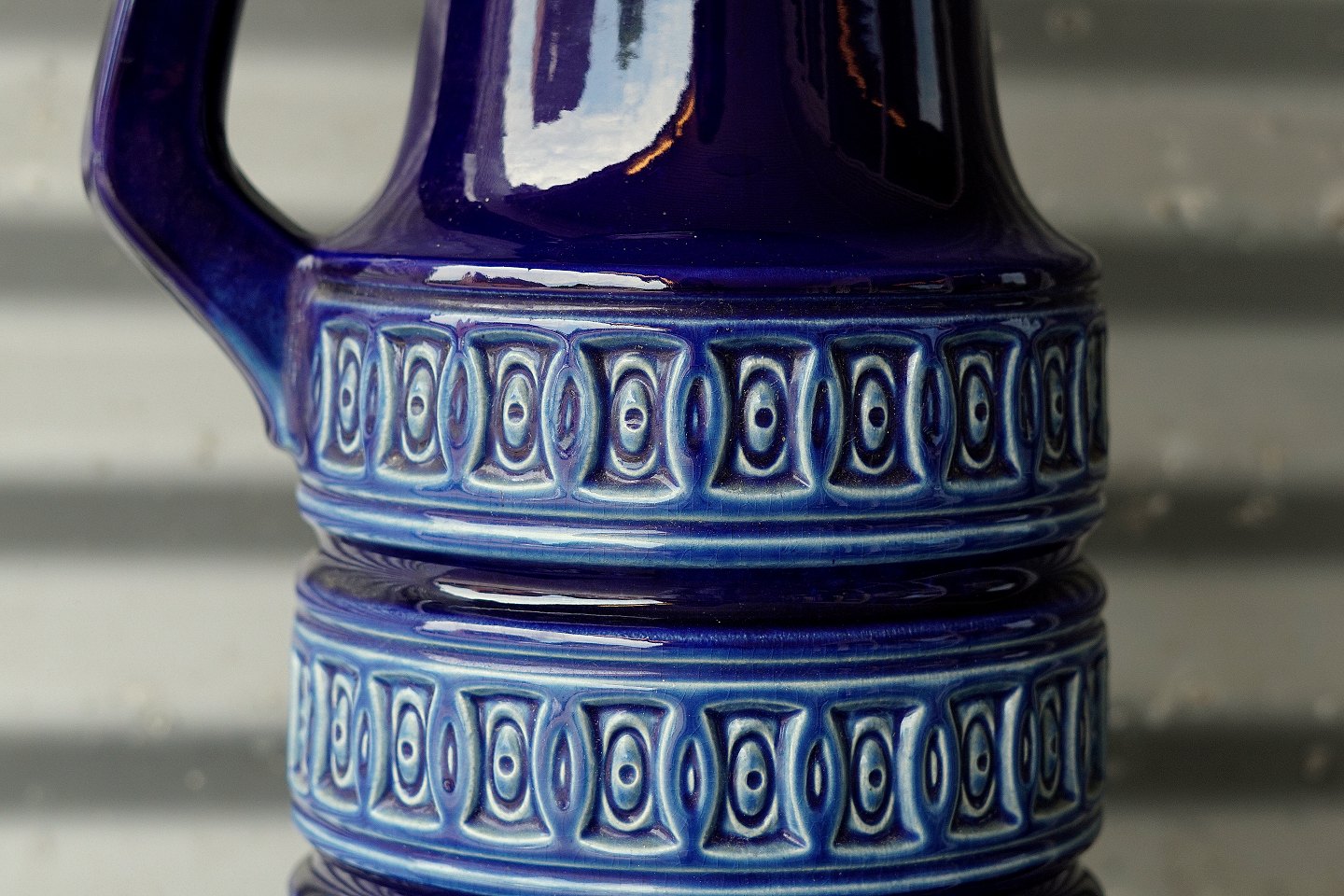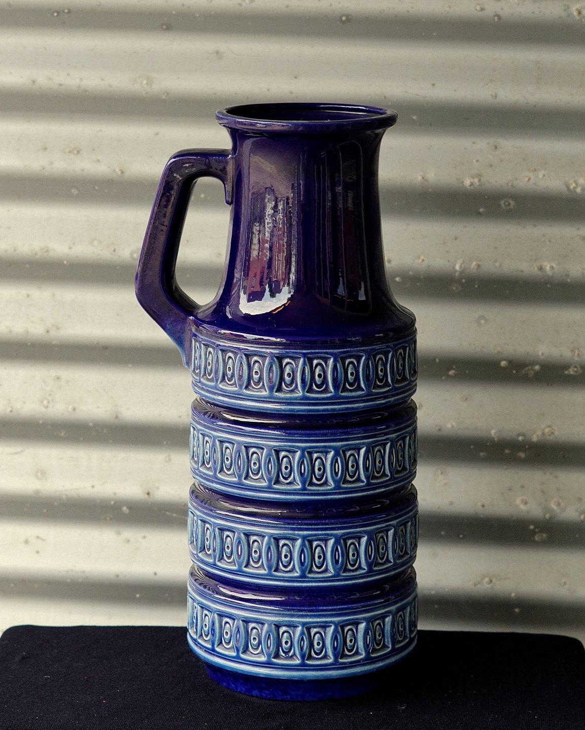 Retro keramik vase fra Scheurich, W. Germany. Gulvvase er med blåt glasur og lavet ca. 1950'erne