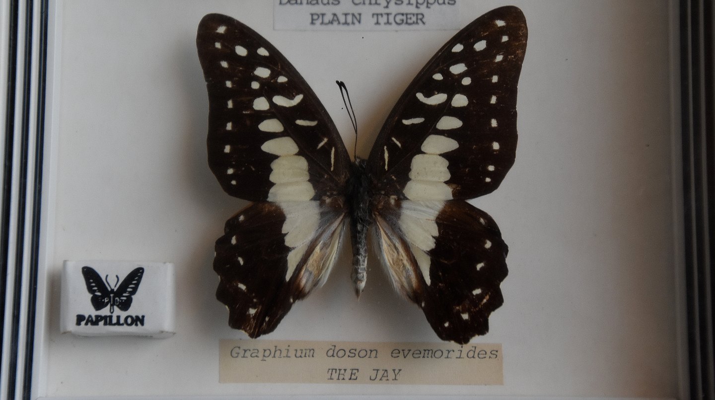 Retro billede med 4 sommerfugle i sort træ-ramme