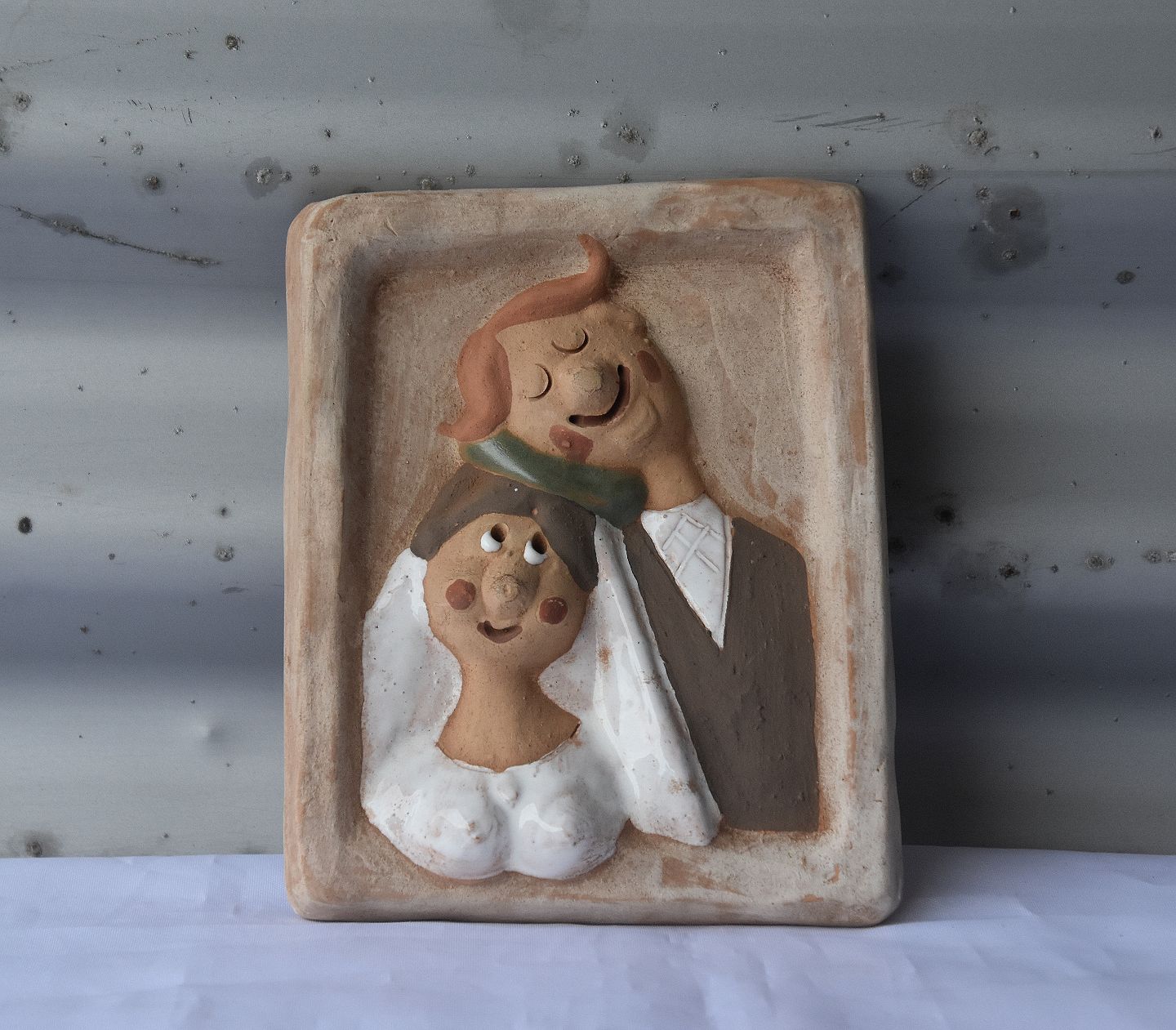 Brudepar, hun har en grøn krans i håret