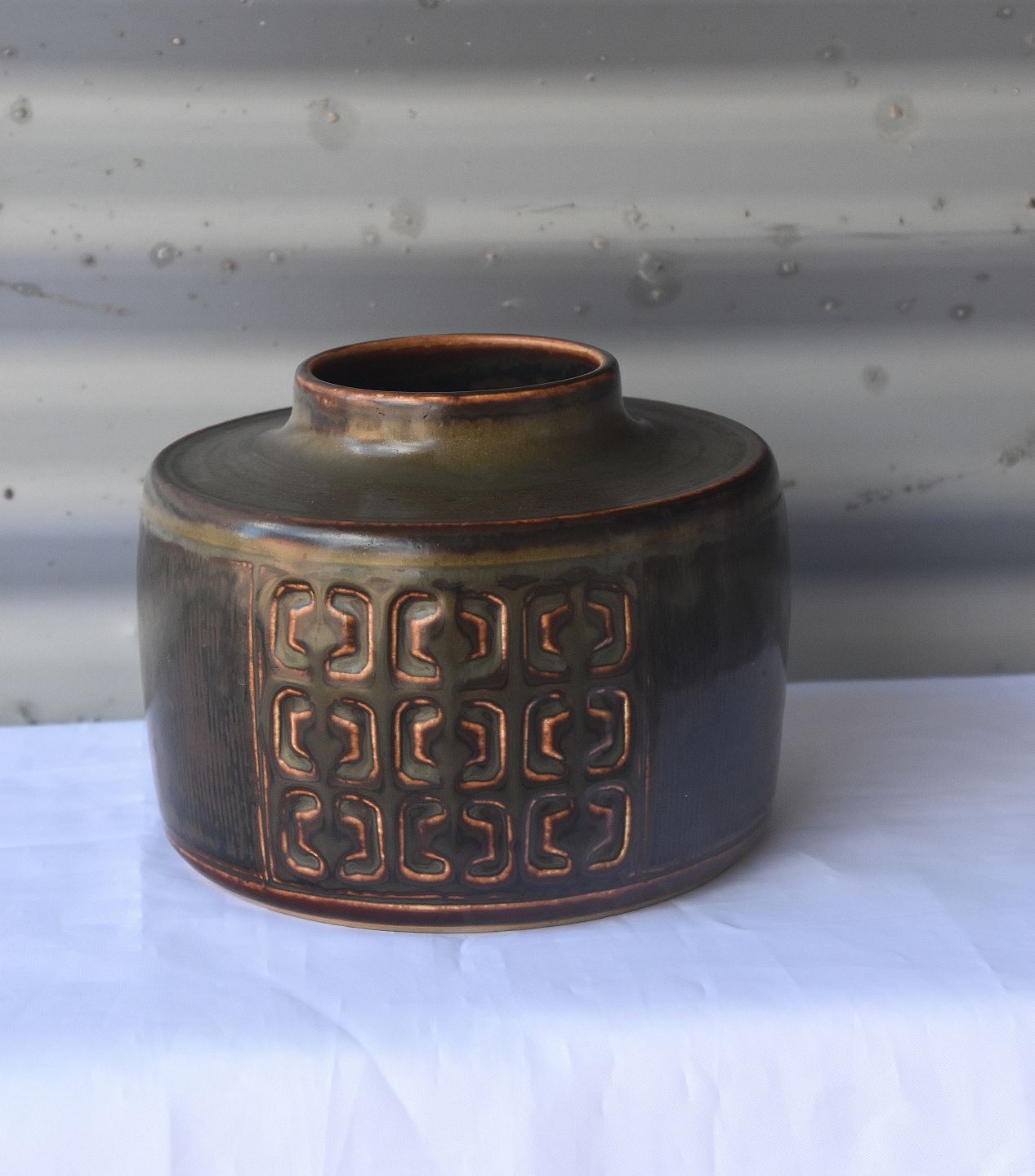 Smuk buttet vase i stentøj nr. 229. Signeret VP