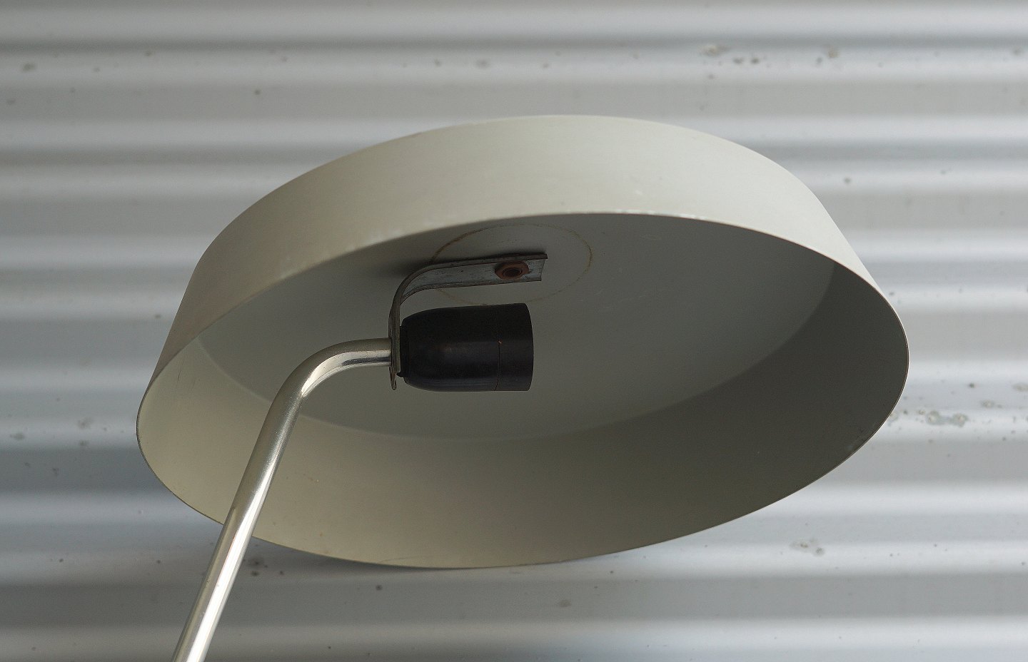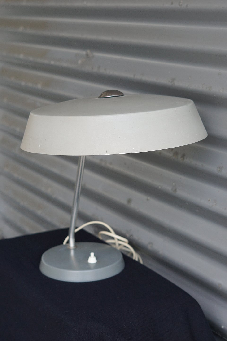 Tysk Industri lampe, fra DDR. Stål, der er malet mat gråt, lampen har patina, Stasi lampe