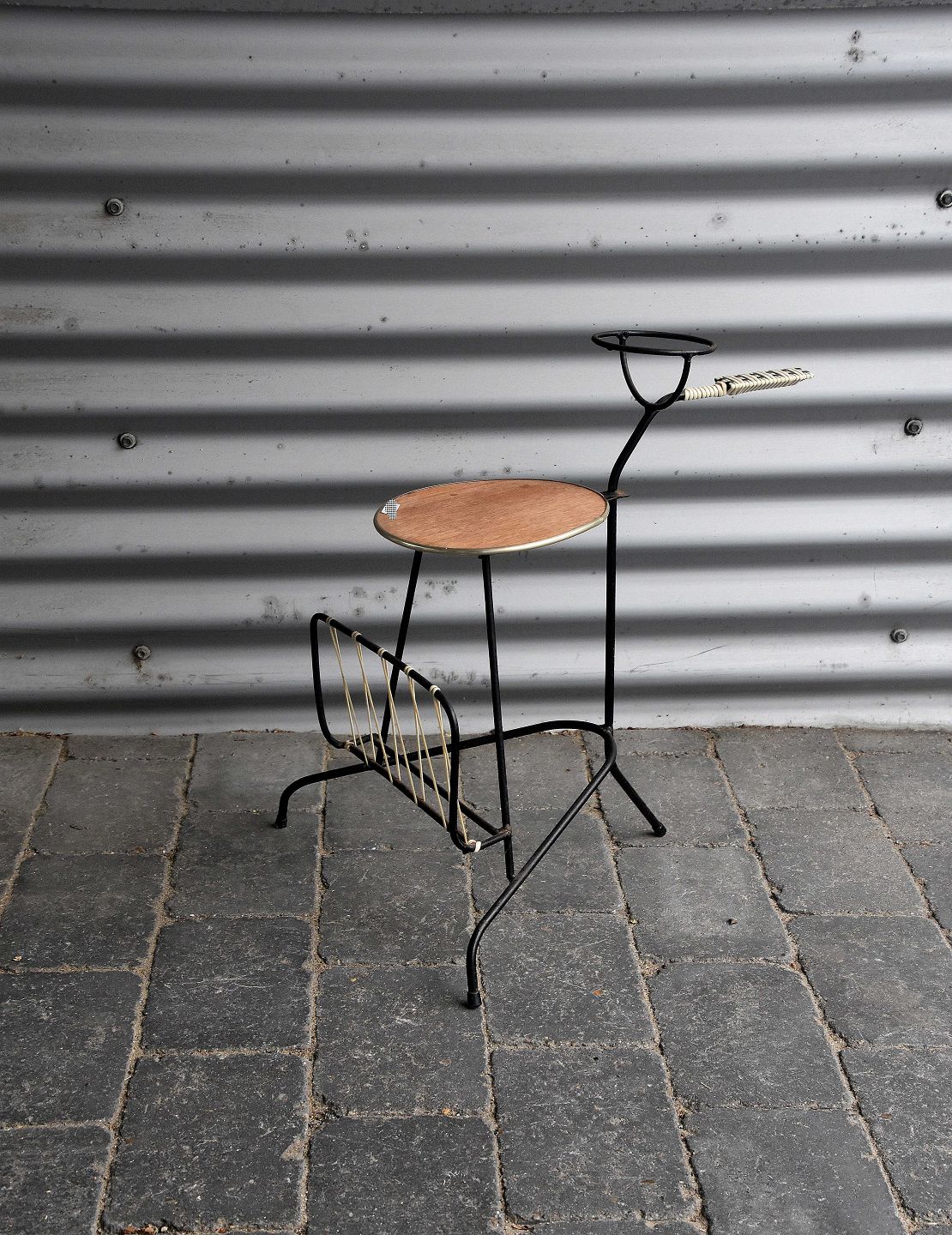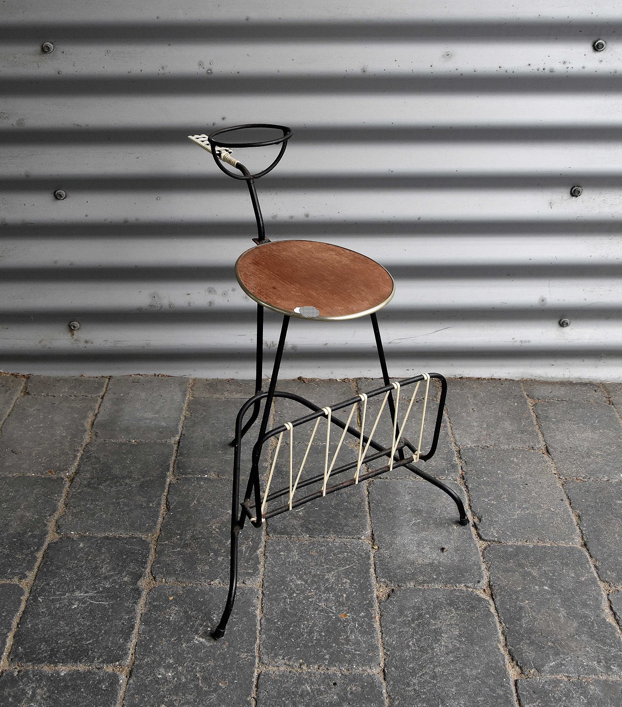 Sidebord/Avisholder i Teaktræ og sortlakeret stål, med original plastflet