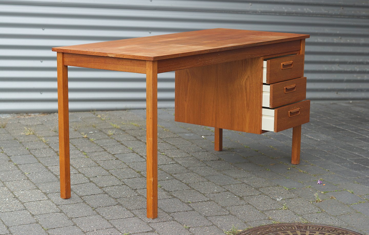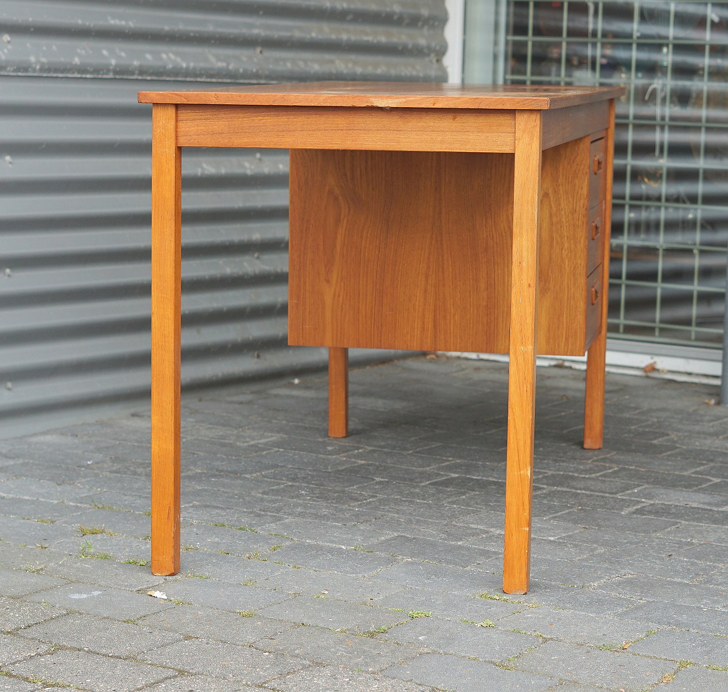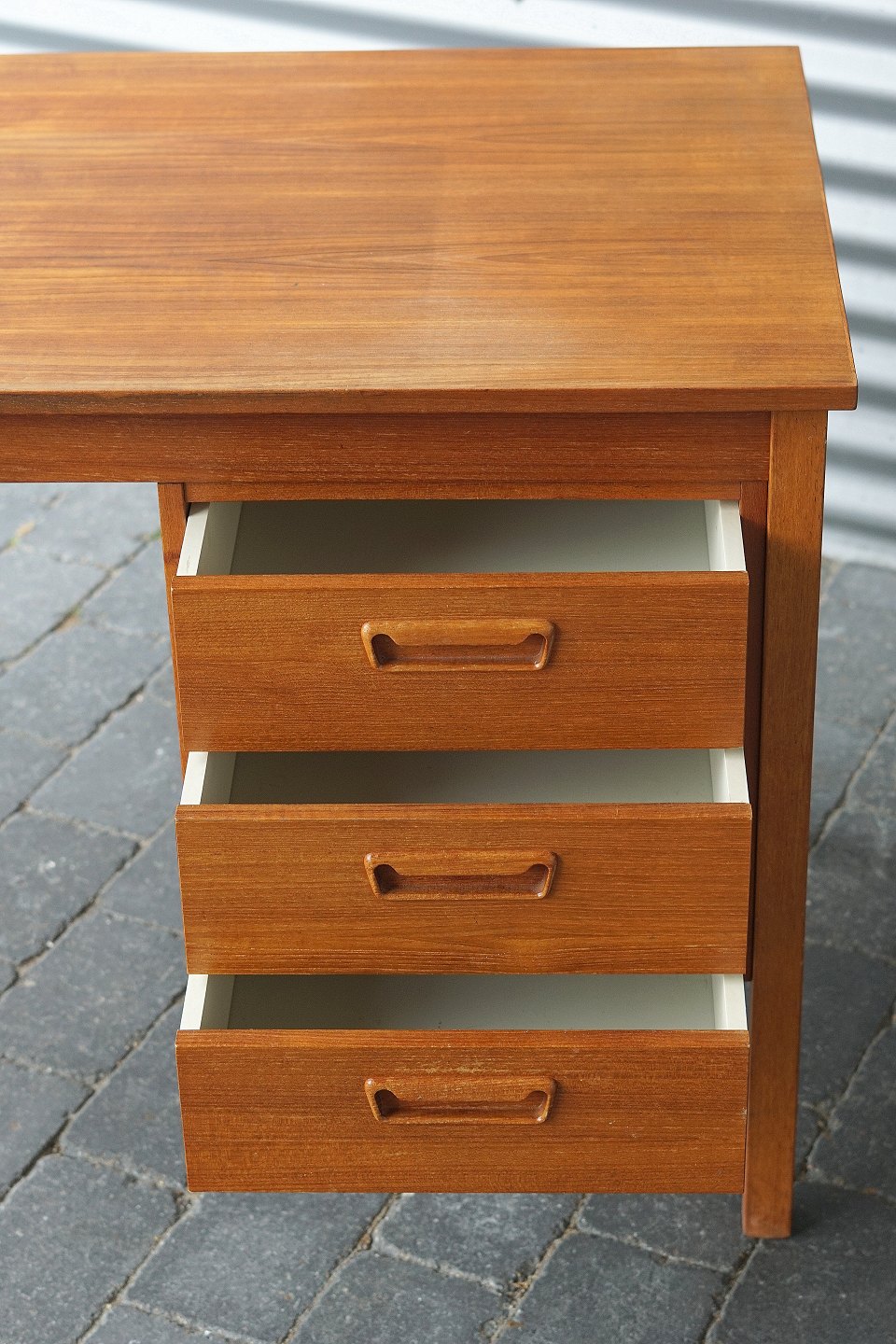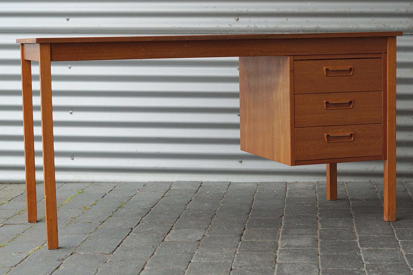 Teaktræs skrivebord med 3 skuffer , vi har andre lignende på lager.