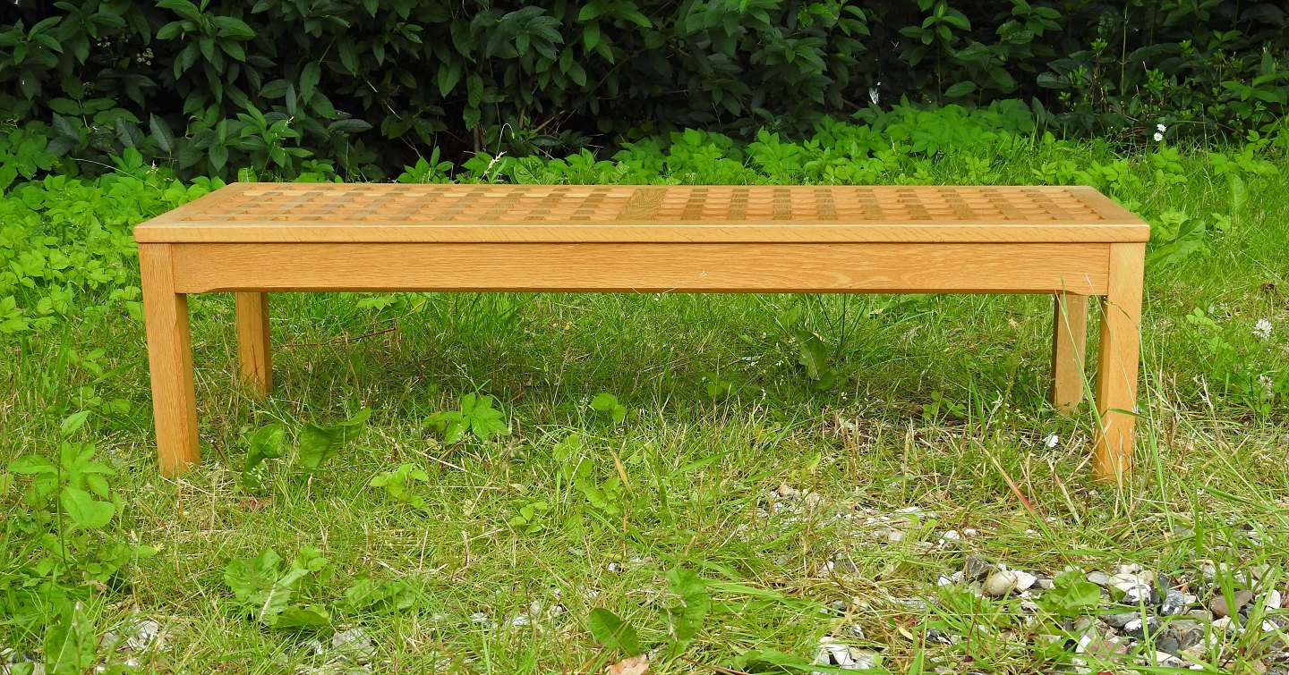 Lav bænk i lakeret egetræ
