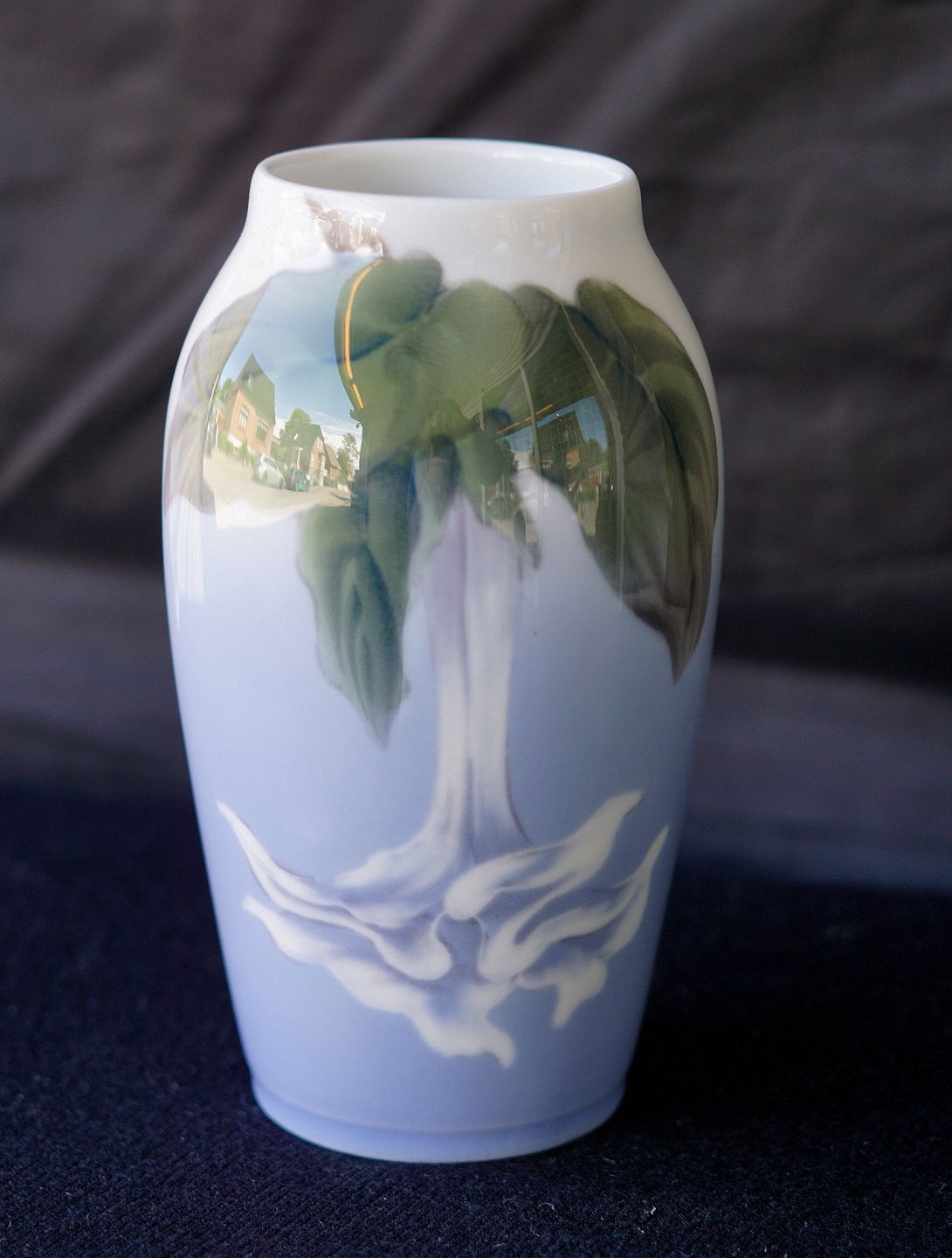 Royal Copenhagen, vase 2687/88-5. Dekoration blomst med grønne blade. Den affotograferet er mærket 88A