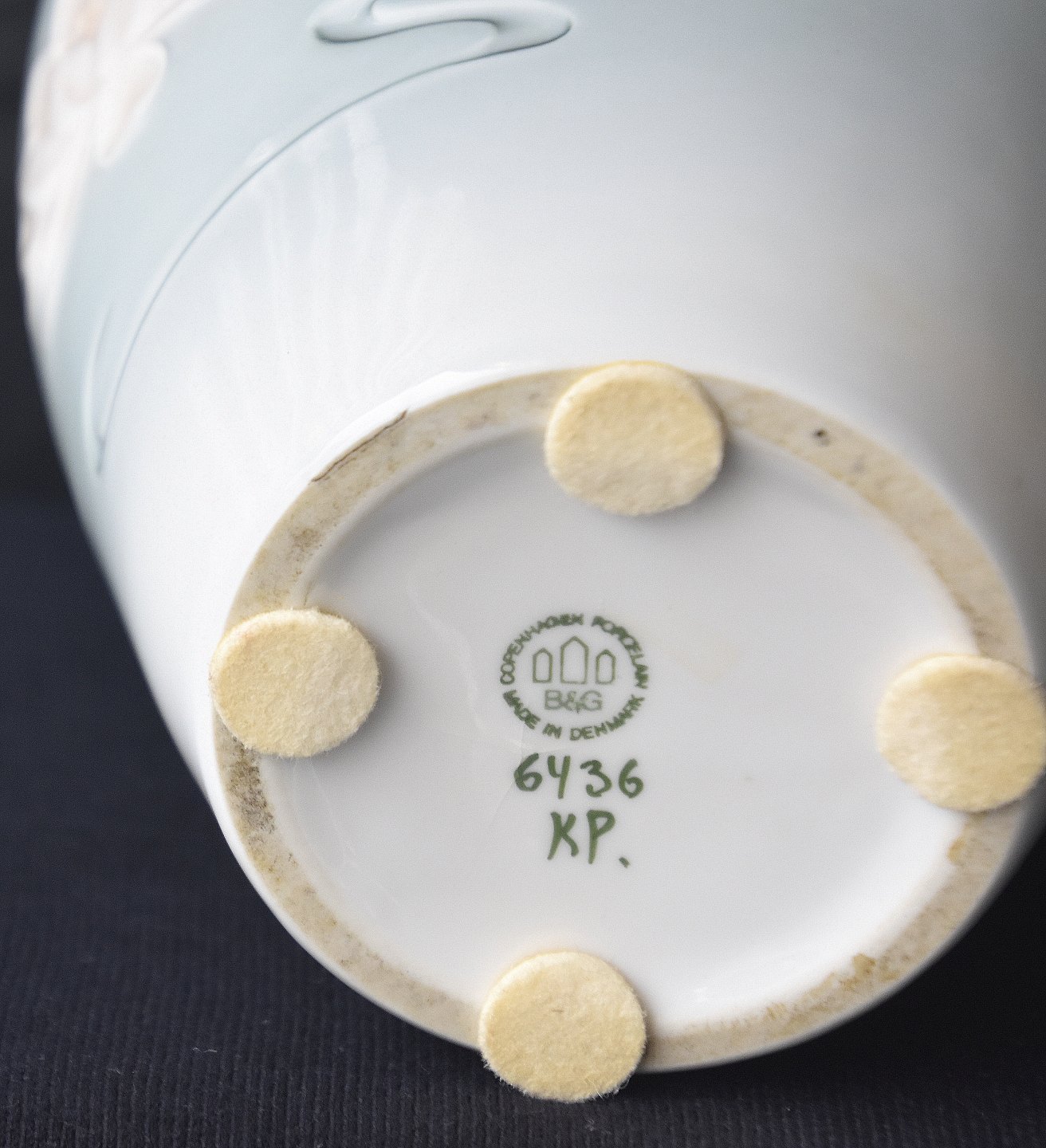 Bing & Grøndahl, vase 6436, 1. sortering. B&G vase dekoreret med åkandemotiv
