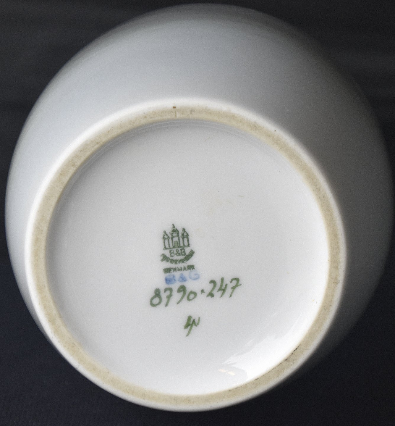 Bing & Grøndahl, B&G, porcelæn, vase, stråtækt bondehus, bondehus, træ grøn, krone