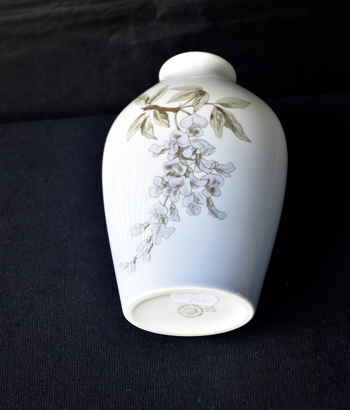 Bing & Grøndahl, vase 172-5239 vase er oval, 1. sortering. Vasen er dekoreret med en gren af blåregn