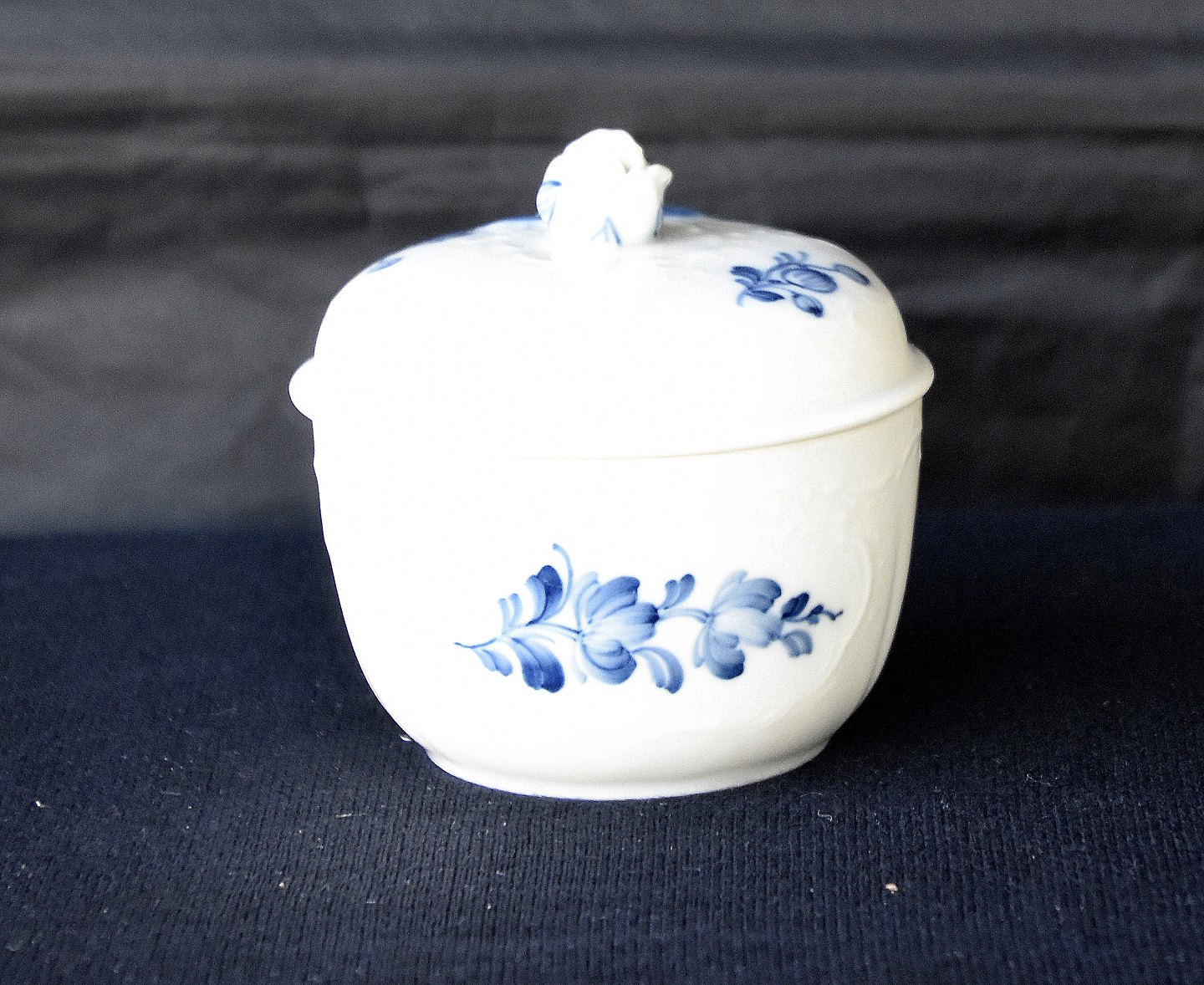 Royal Copenhagen, RC, Den Kongelige Porcelænsfabrik, KGL., Juliane Marie, sukkerskål, blåblomstret, enkedronning, låg