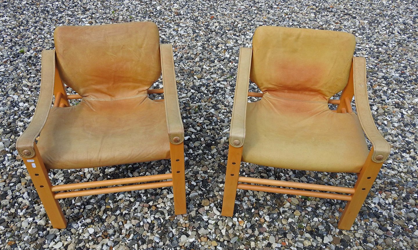 En safariestole i bøg med sæder i lyst naturlæder