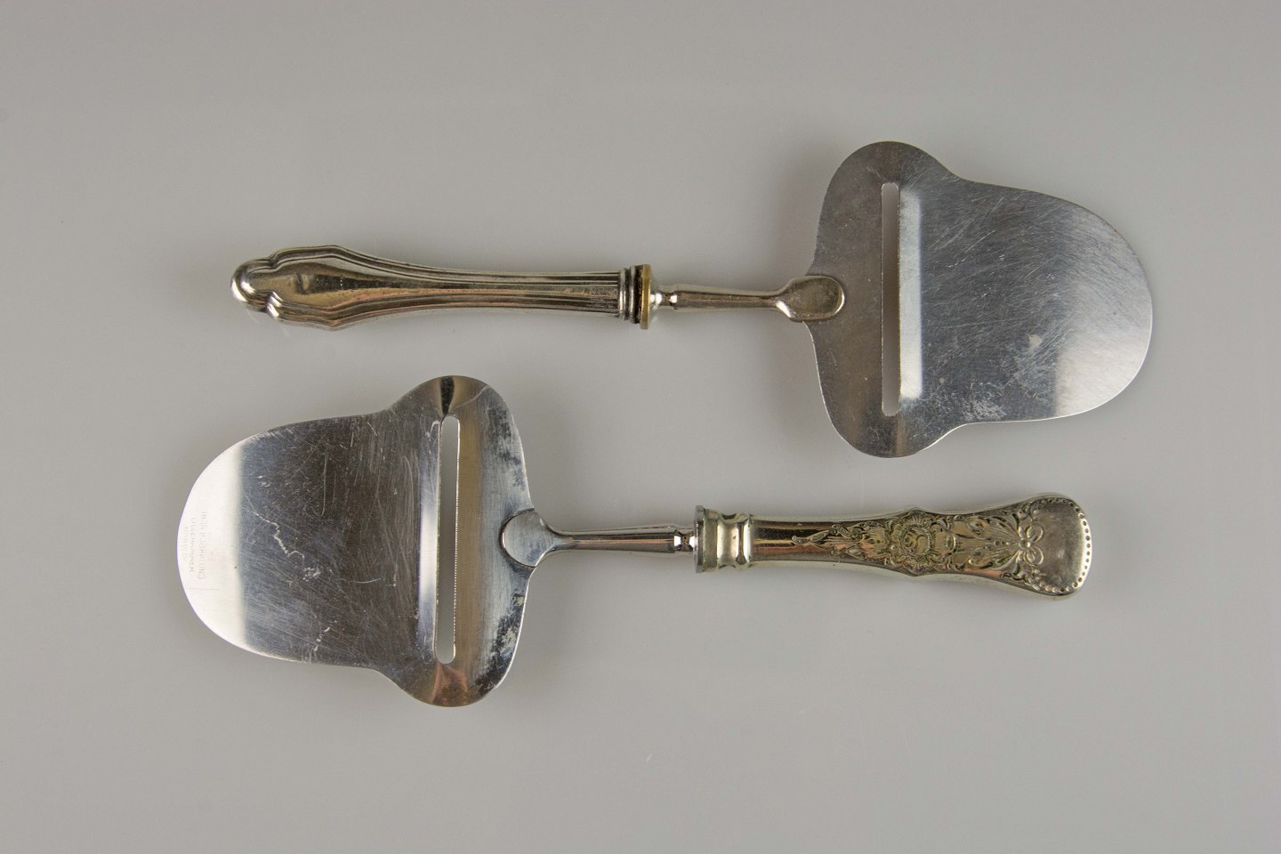 To ostehøvle i sølv med stålblad fra Raadvad i dansk design