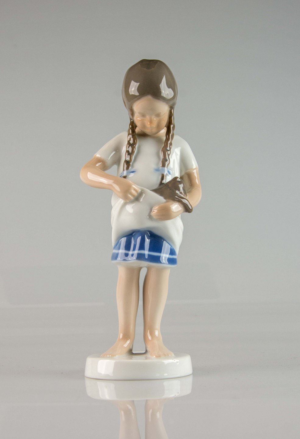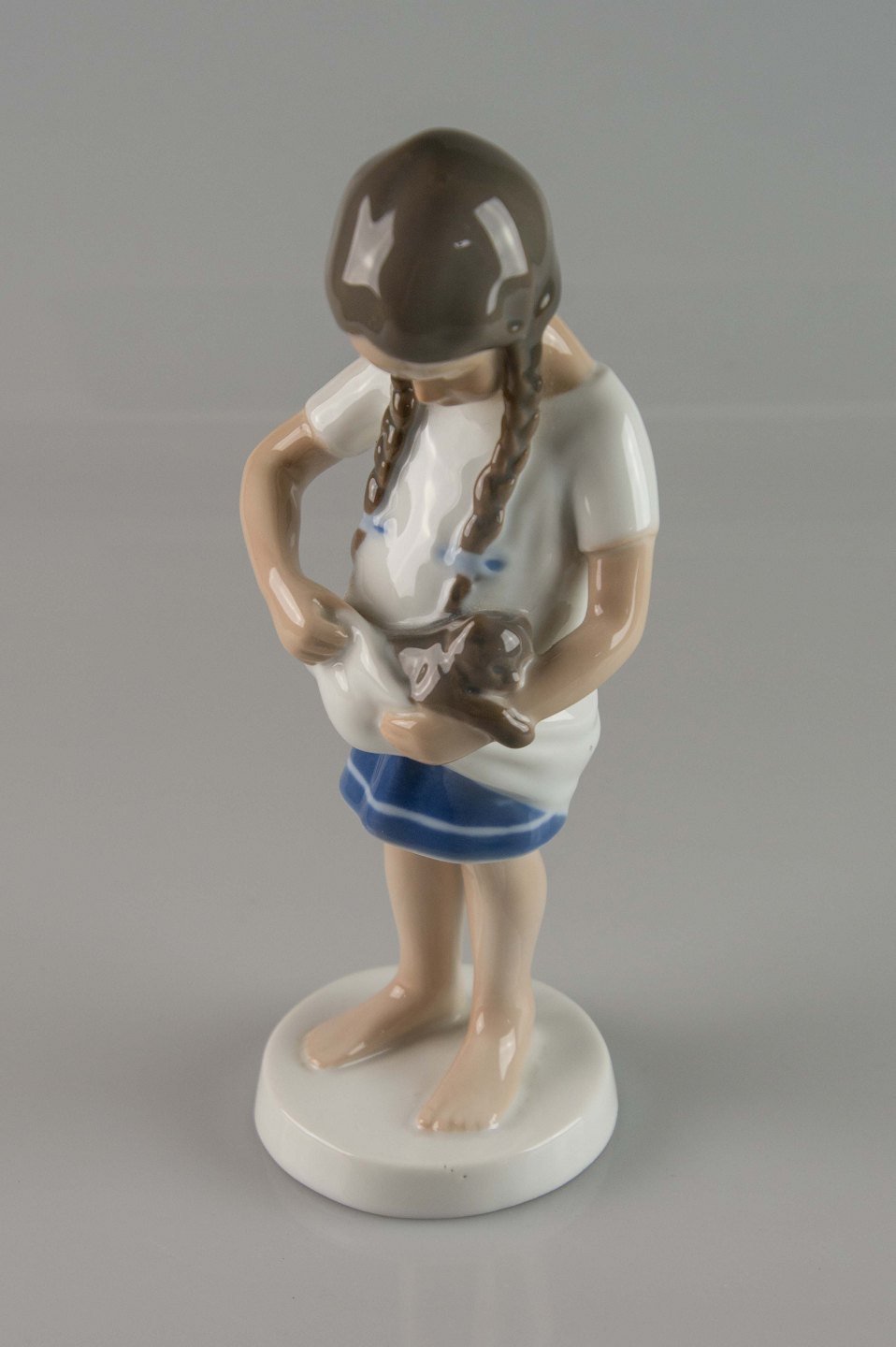 Figur i porcelæn med motiv af pige med kattekilling nr. 1779