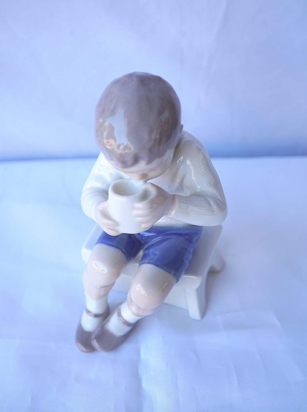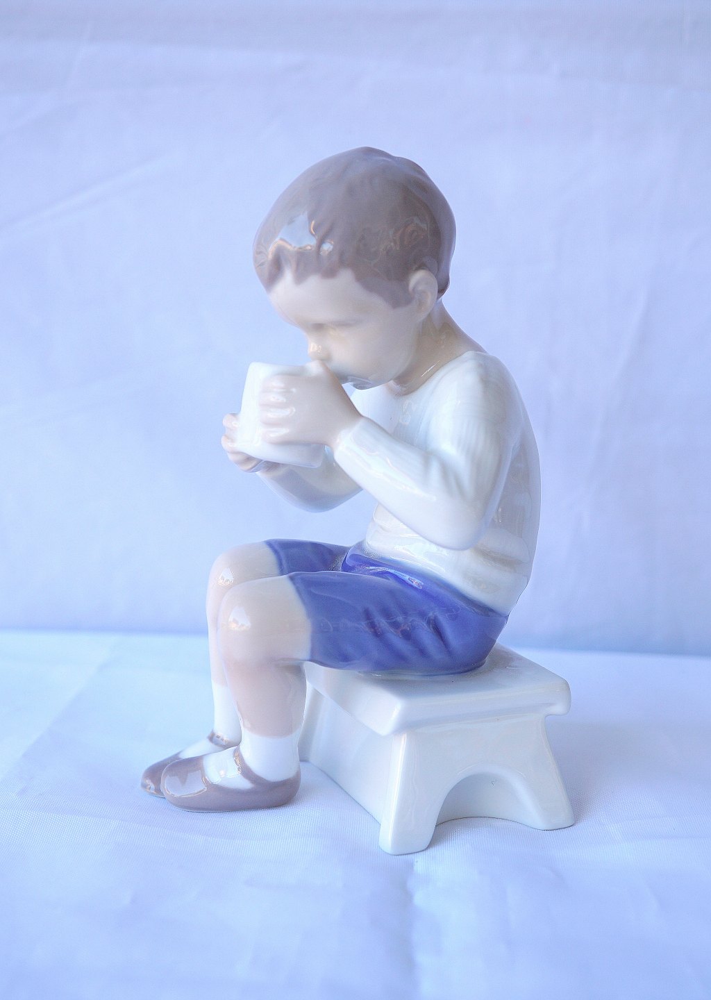 Bing & Grøndahl, Dreng med kop nr. 1713, Victor sidder og drikker mælk, Figuren er 1. sortering