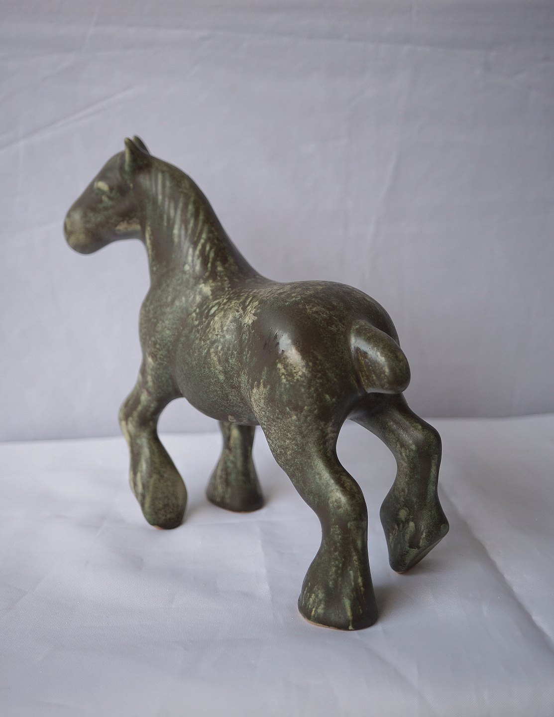 Hest, grå/brun, keramik, Bornholm, Johgus