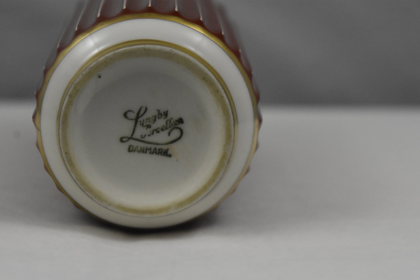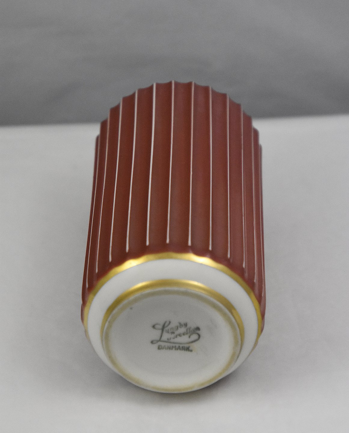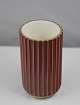 Rød Lyngby vase i porcelæn med riflet korpus og guldkant