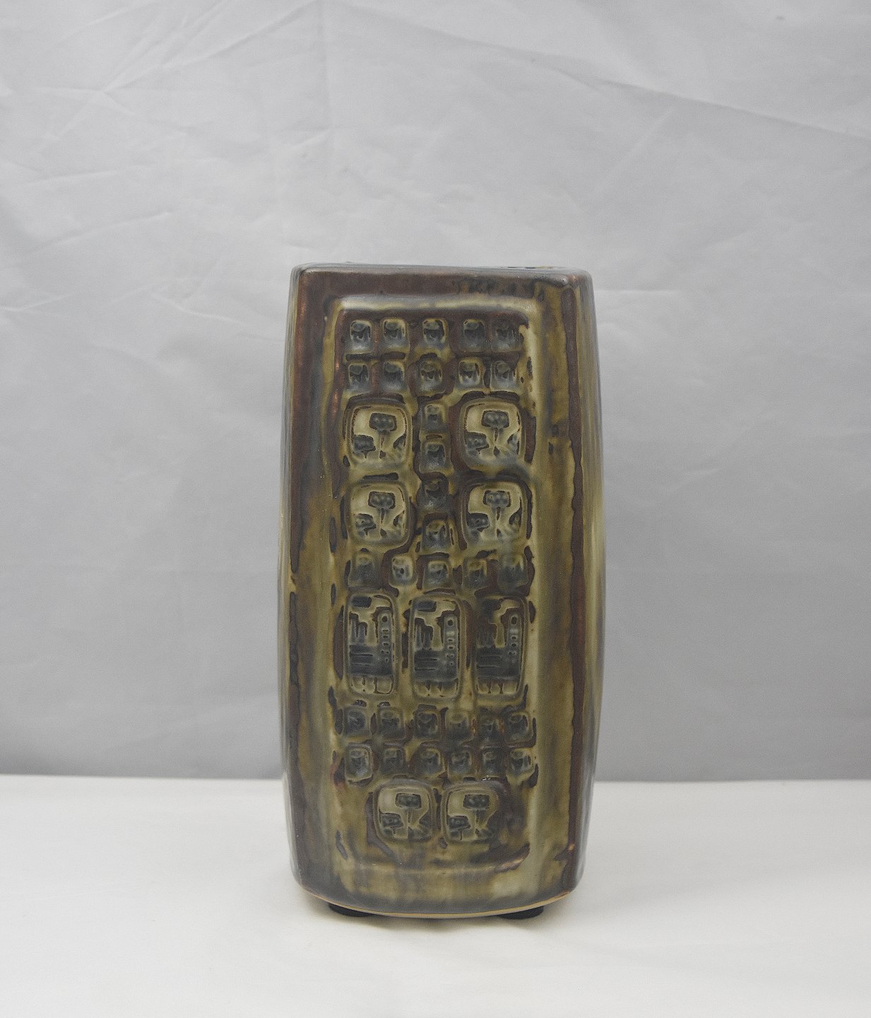 RC 4-kantet vase nr 21923 i stentøj, dekoreret med fantasi fugle