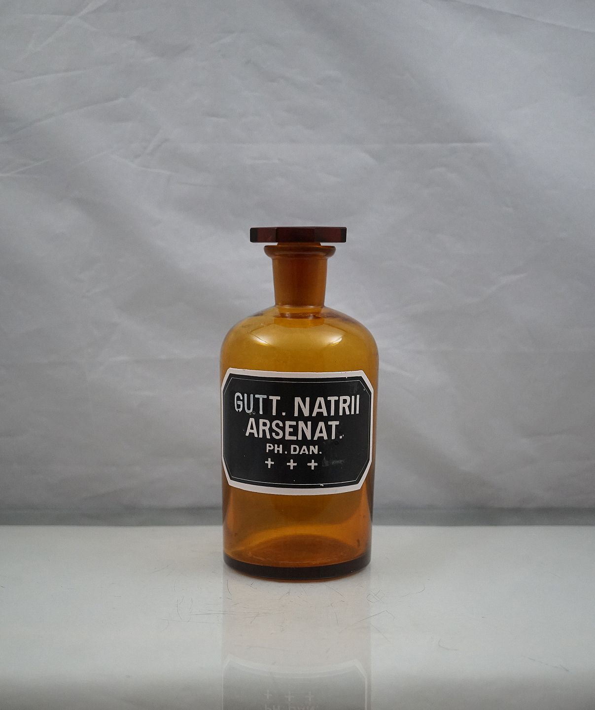 På flaskens etiket står Gutt. Natrii Asenat. Ph. Dan