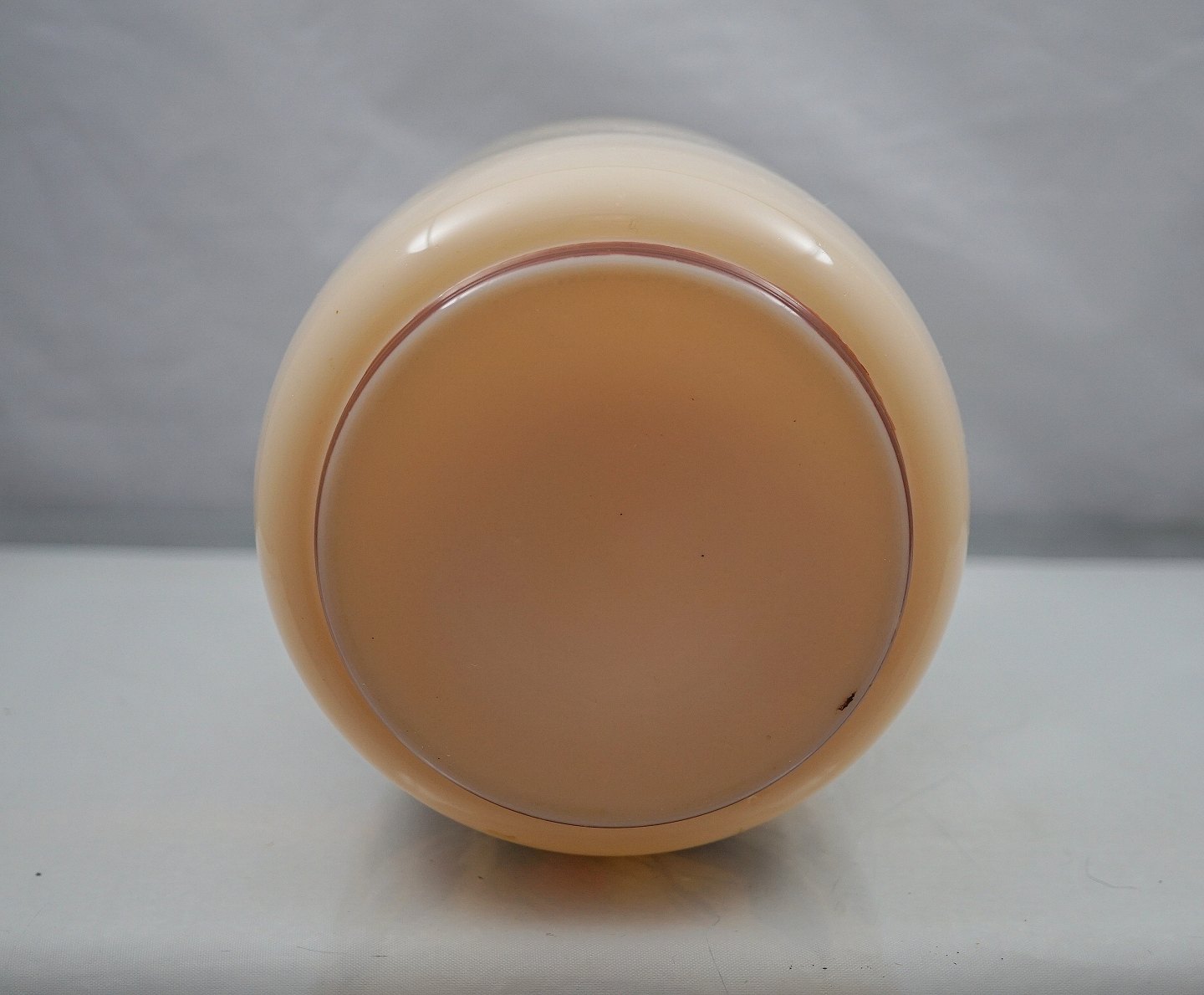 Kiksespand, Bisquitdåse, glas, opal glas, rosa, kinesisk, landskab, blomster, stål