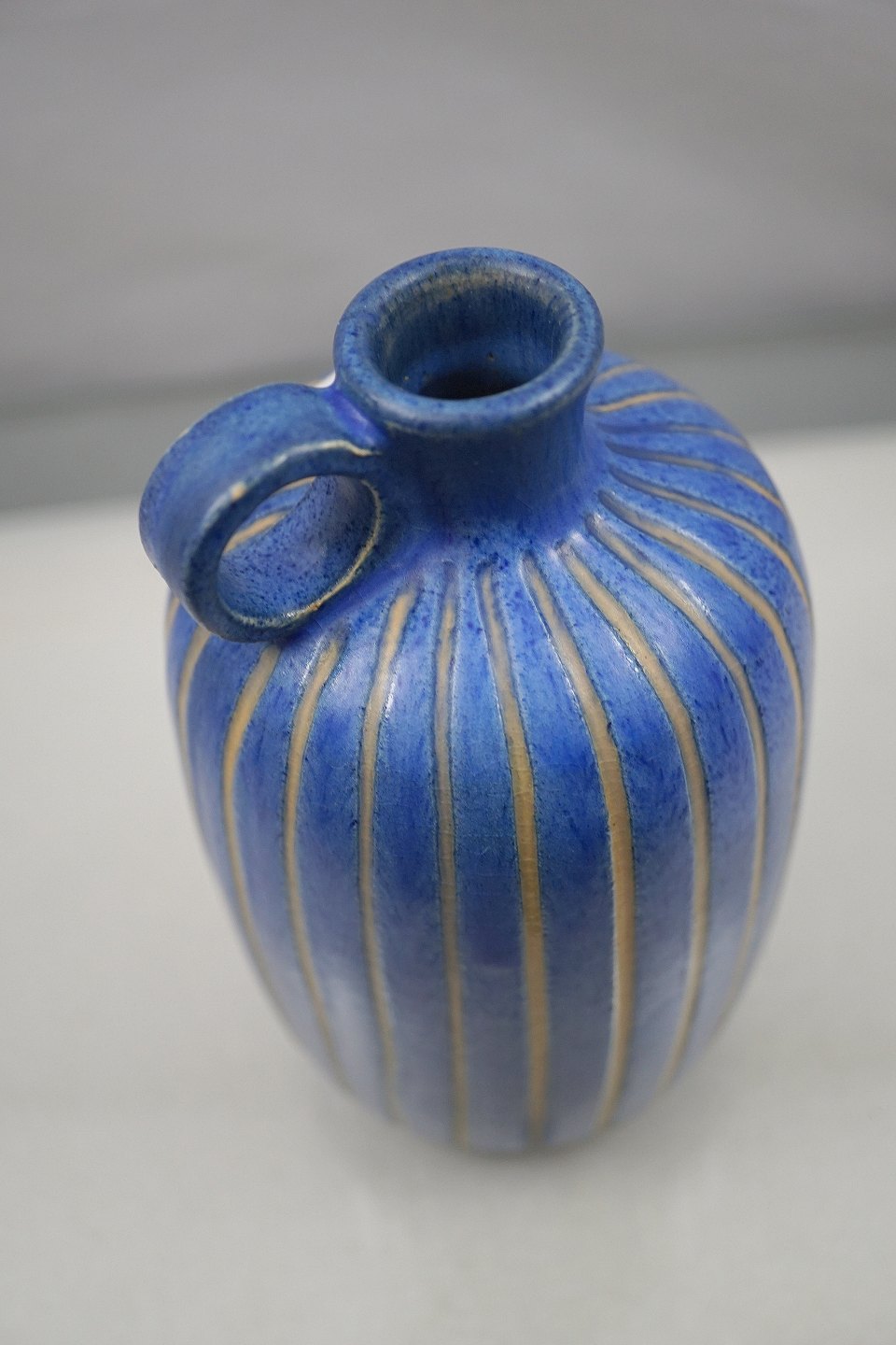 Cavila keramik vase med hank. Blå og hvid glaseret