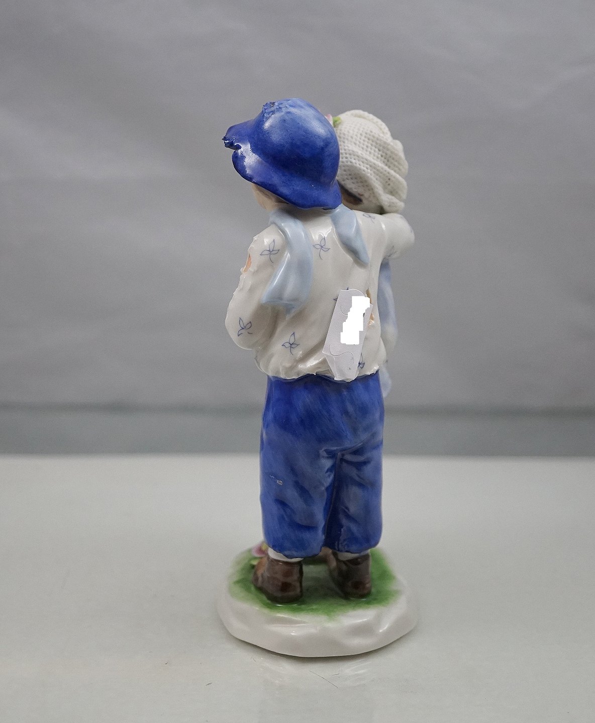 Porcelænsfigur af Dreng og Pige , dreng med roser, dreng og pige med huller i tøjet