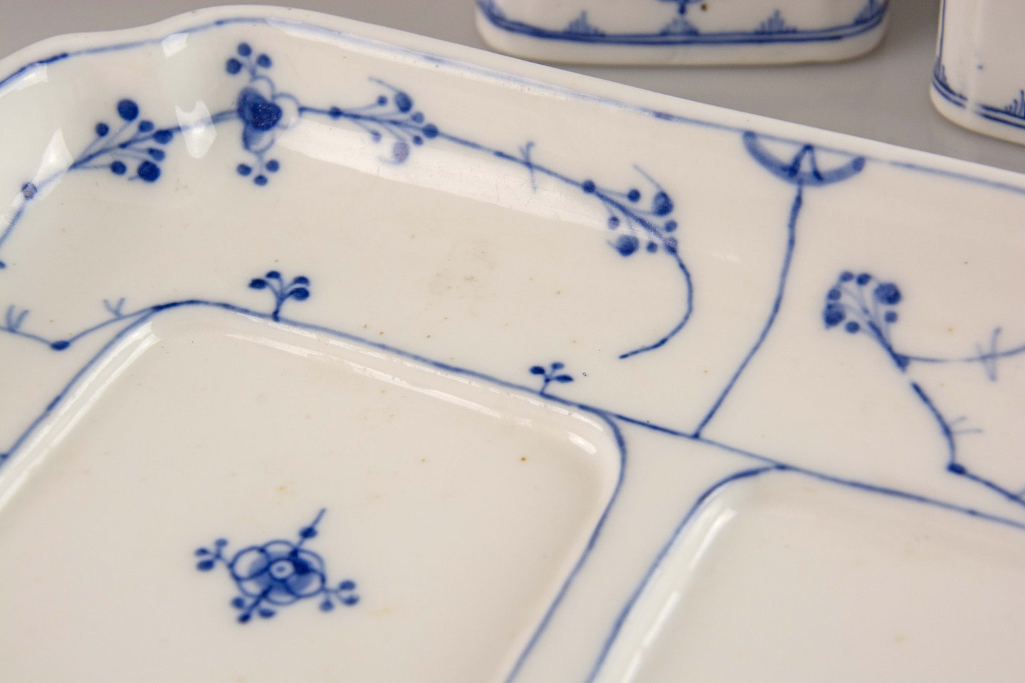 RC glat musselmalet, Antik RC, Kgl. skrivesæt, Kongeligt musselmalet skrivesæt, Kongeligt glat musselmalet, Kgl., Royal Copenhagen glat musselmalet blækhus sæt