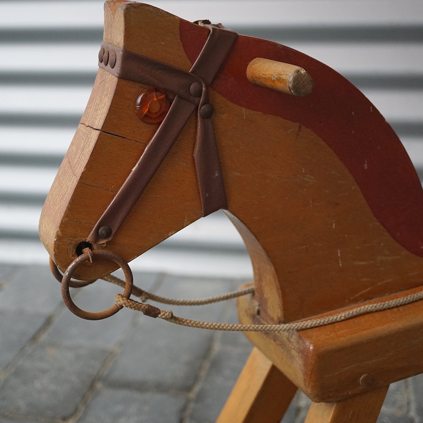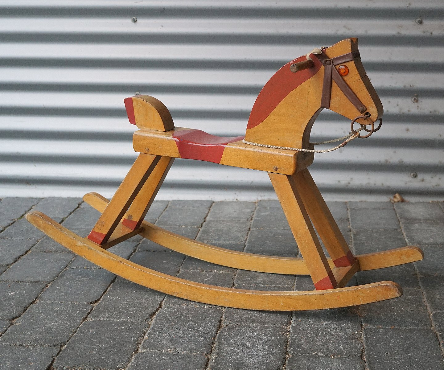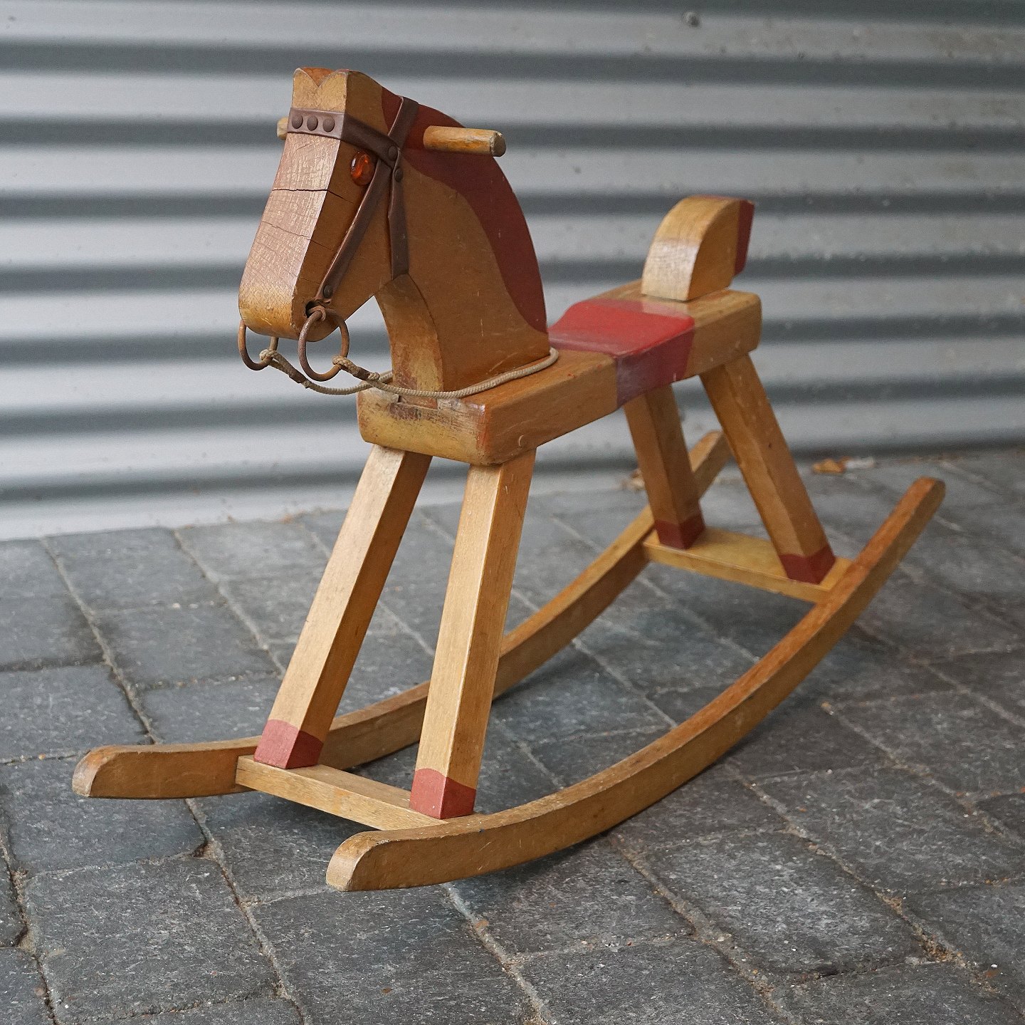Kay Bojesen Træ gyngehest, der er bemalet. der er almindelige brugsspor, efterleg, på hesten