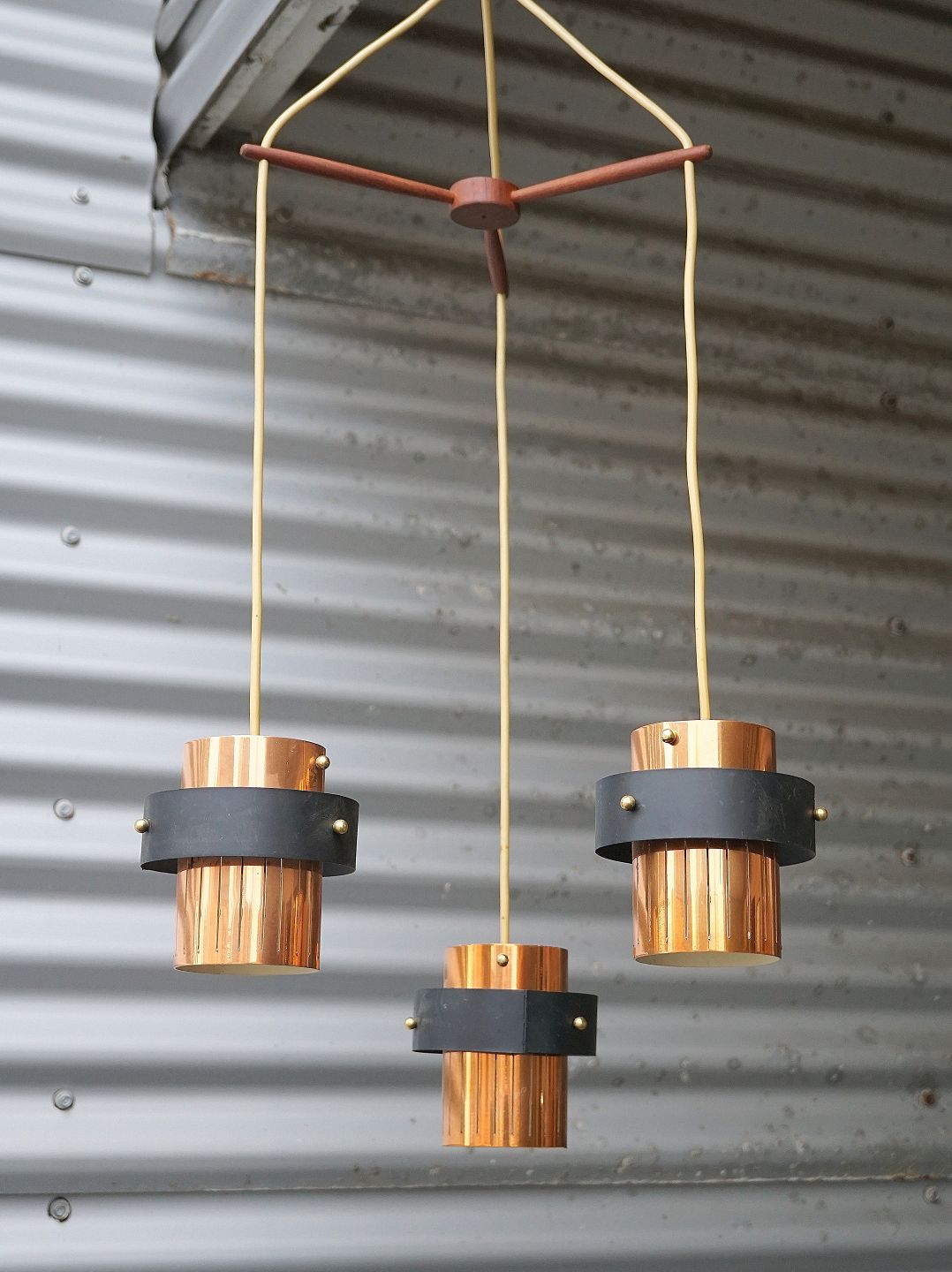 Skærmene er af kobber med sort lakeret metal og indvendig hvid mat lakeret