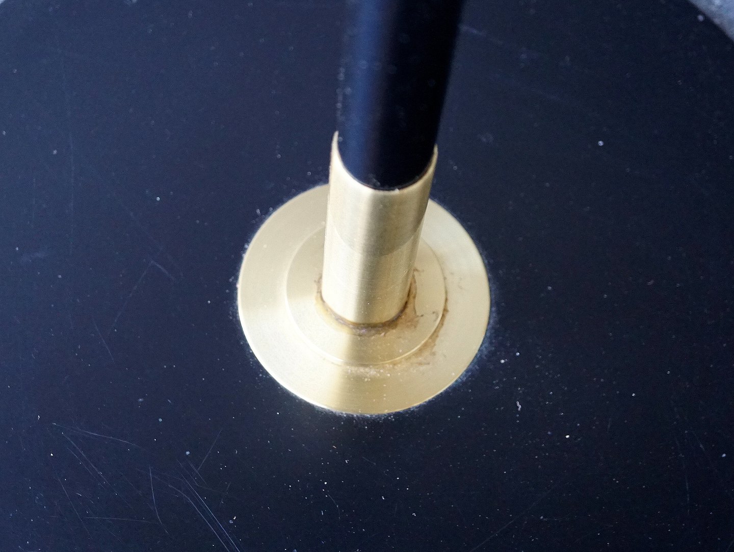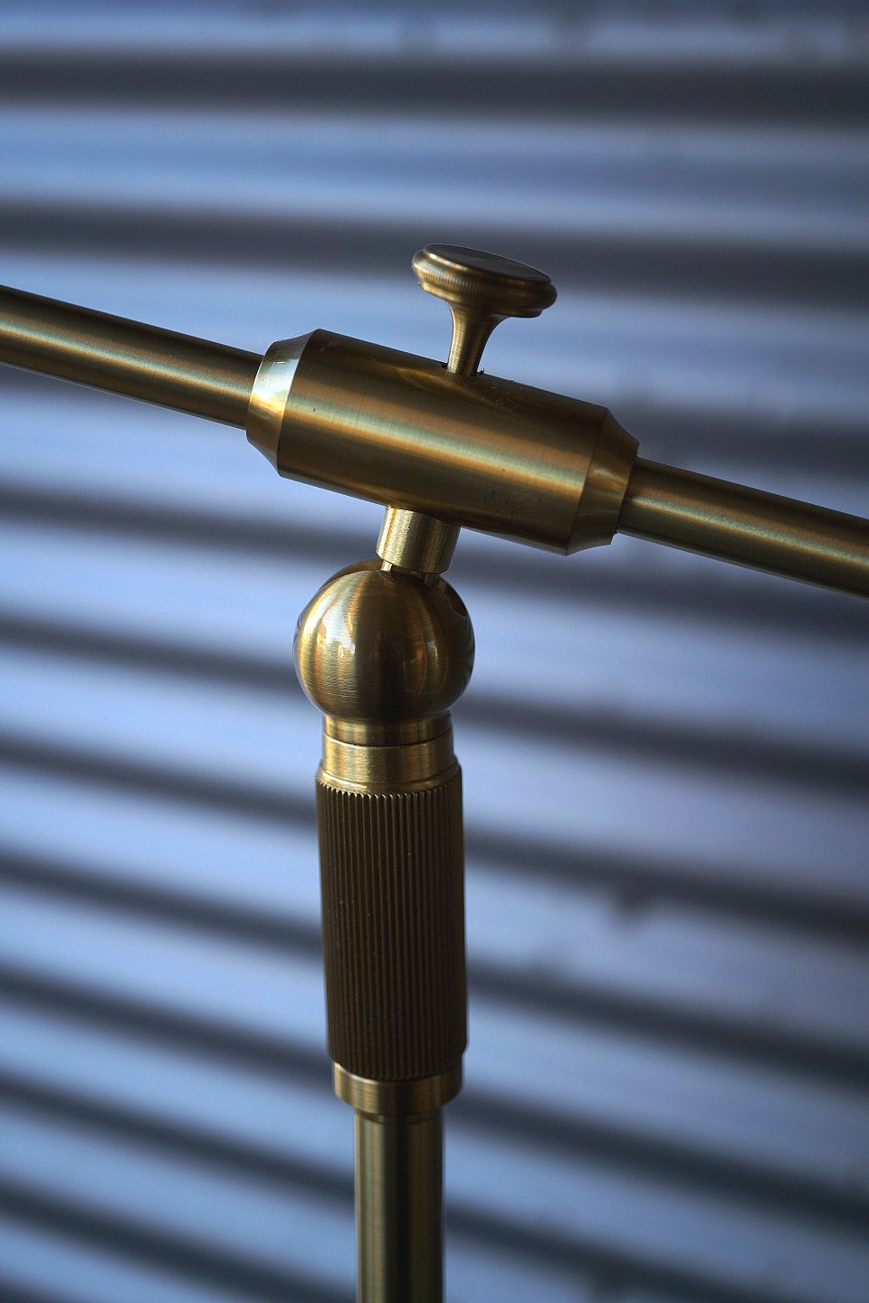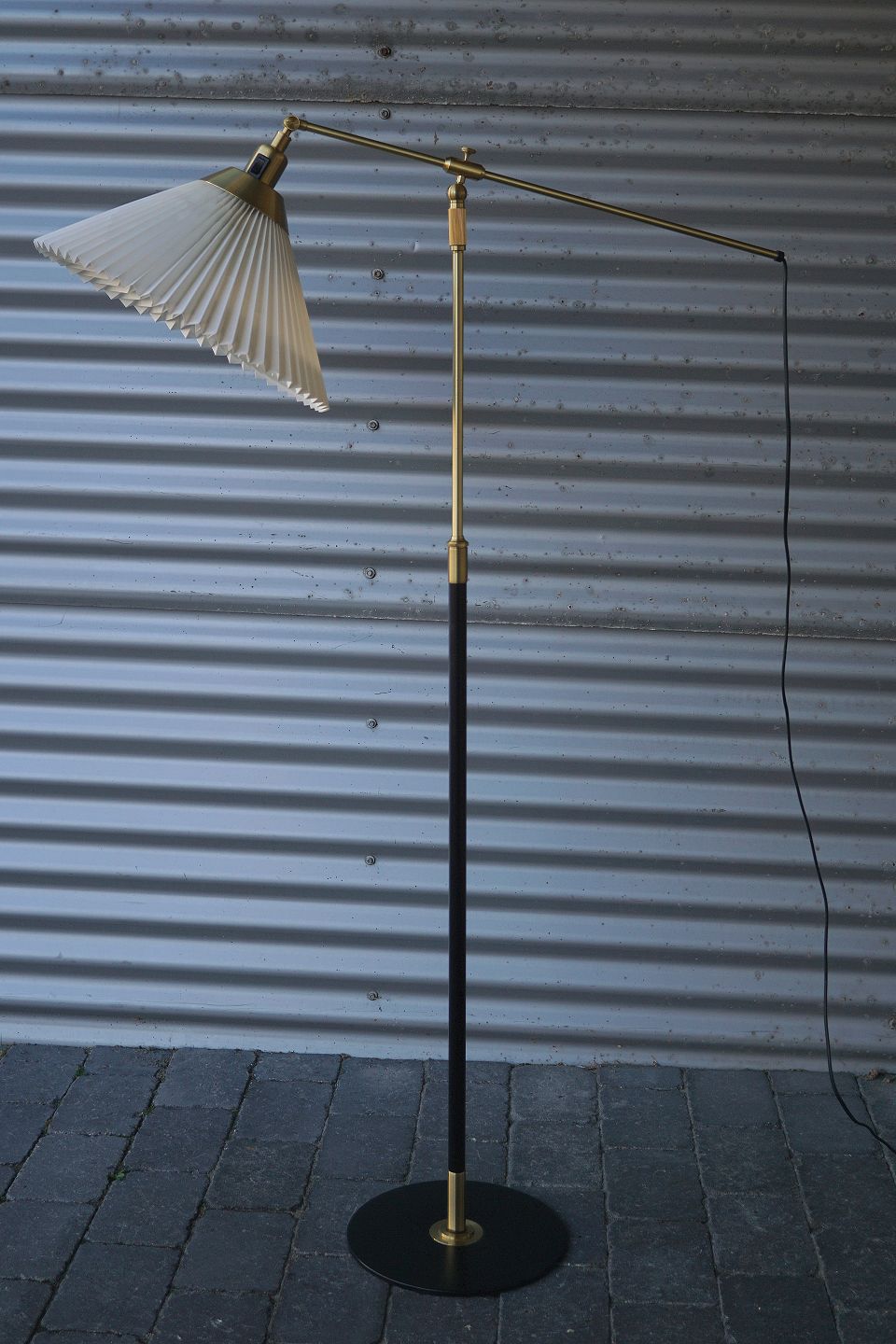 Lampen er fremstillet i messing og sortlakeret metal med regulerbar højde