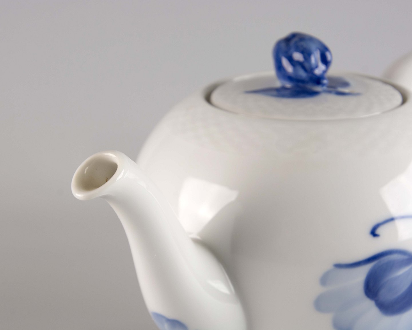 Kgl. tekande, Royal Copenhagen Blå blomst flettet kande, Royal Copenhagen nr. 10/8244, Kongelige tekande, RC blå blomst tepotte