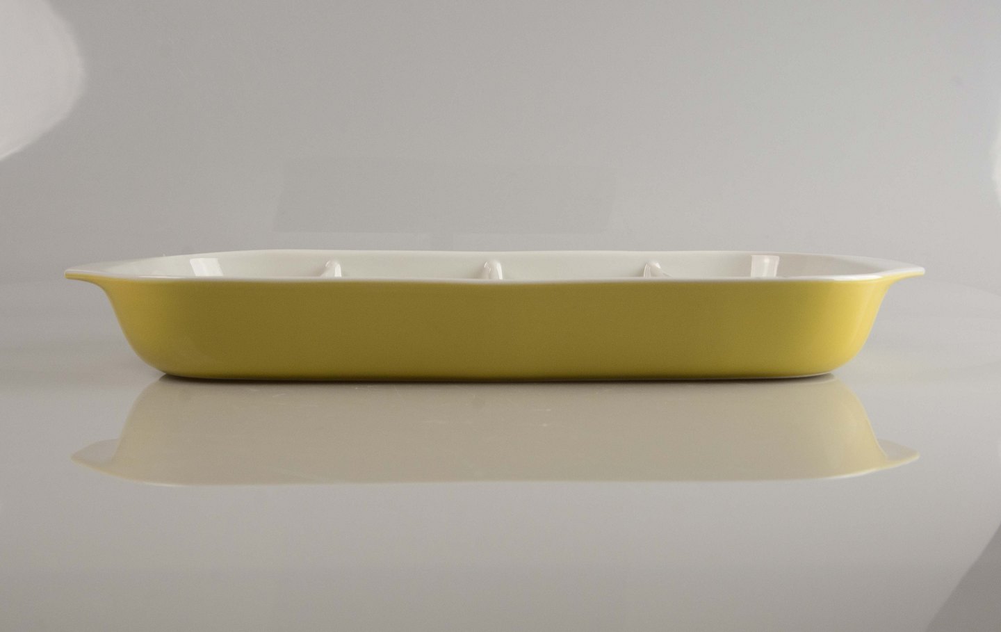 Rumdelt ildfast fad i stellet Gul glasurfarvet
