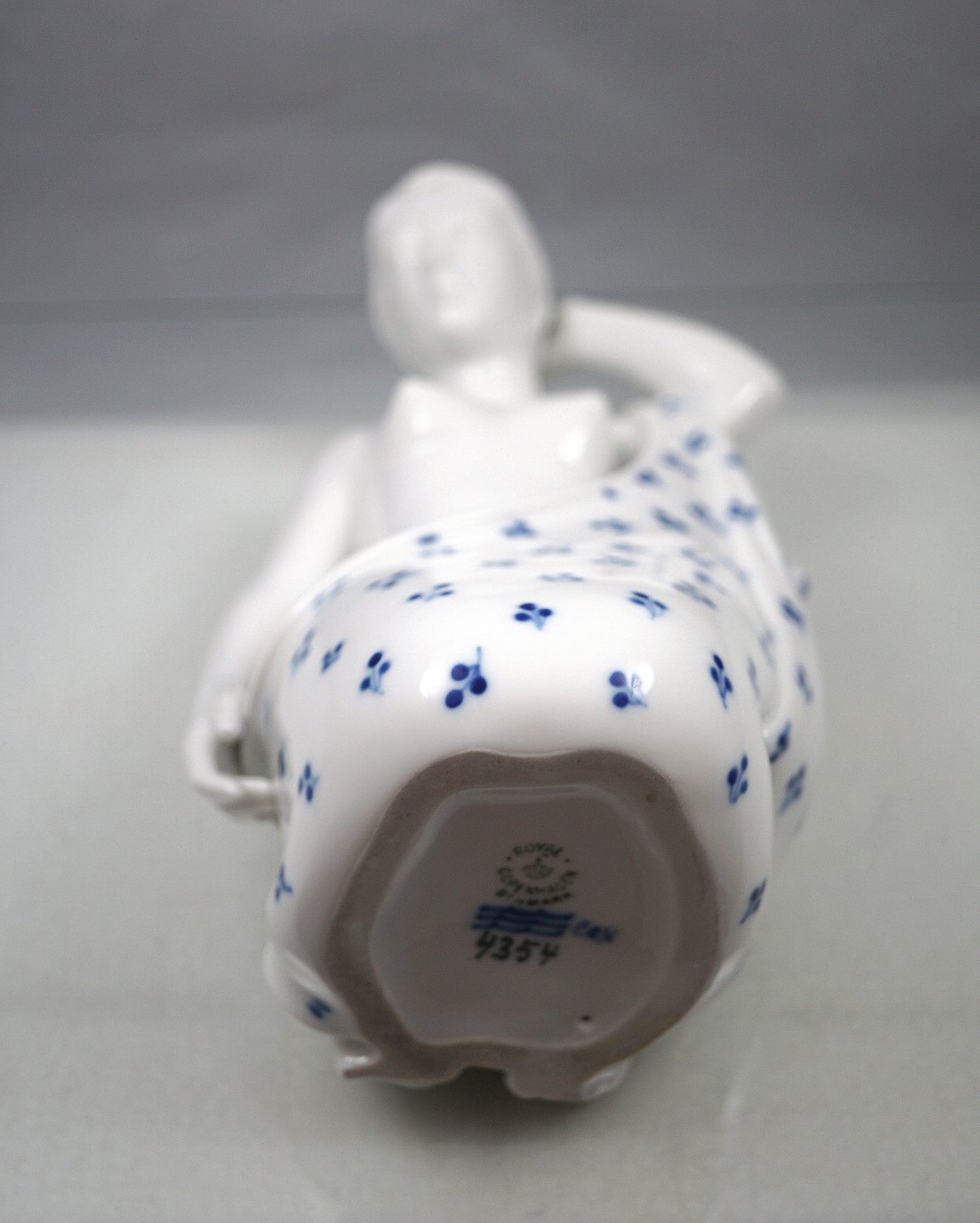 Figur i porcelæn med motiv af nøgen knælende kvinde med blåmalet klæde Nr. 4354.