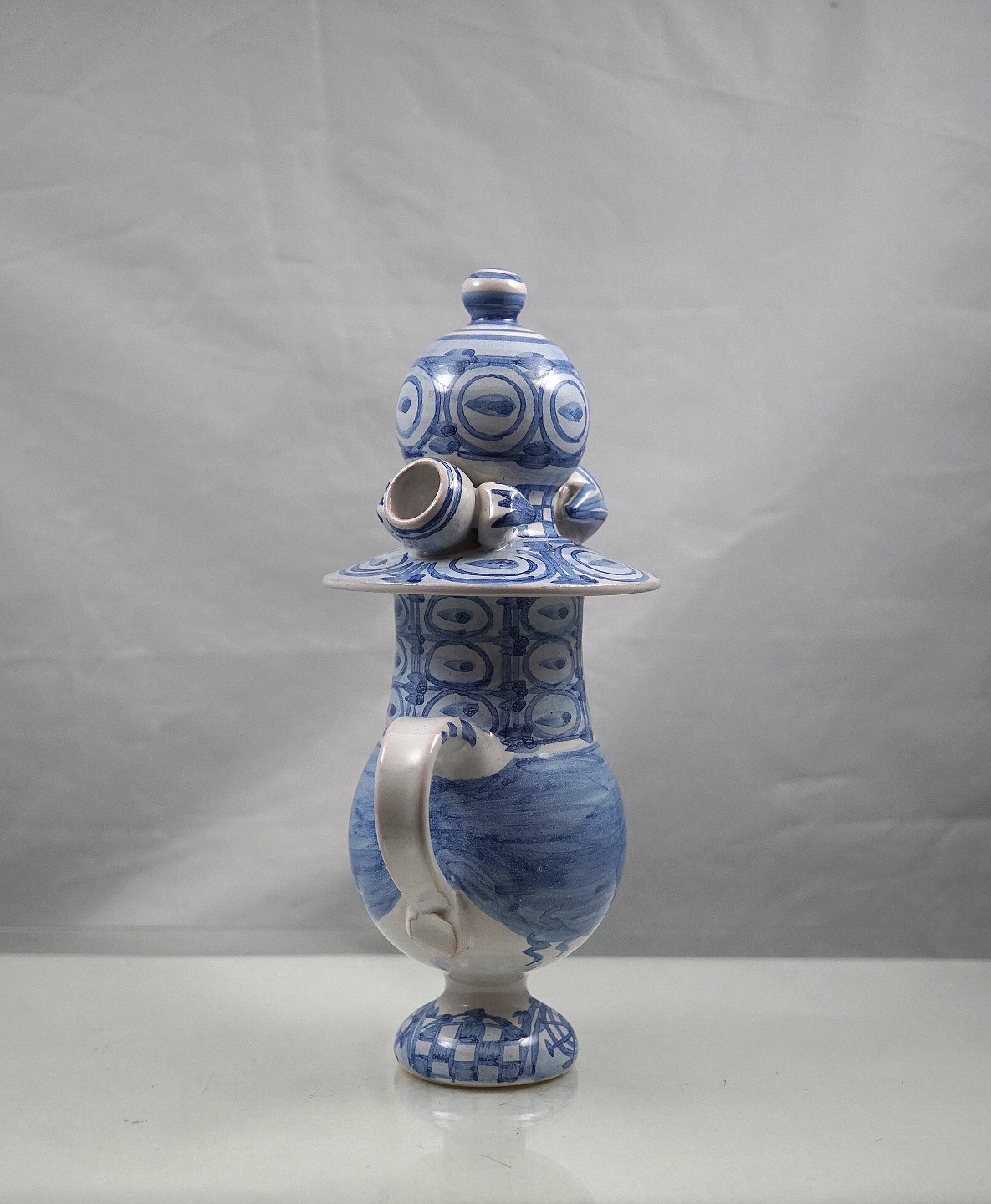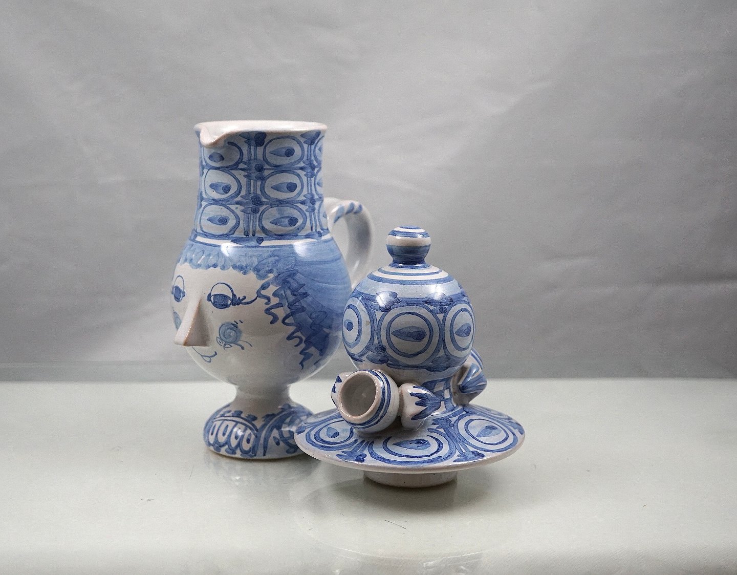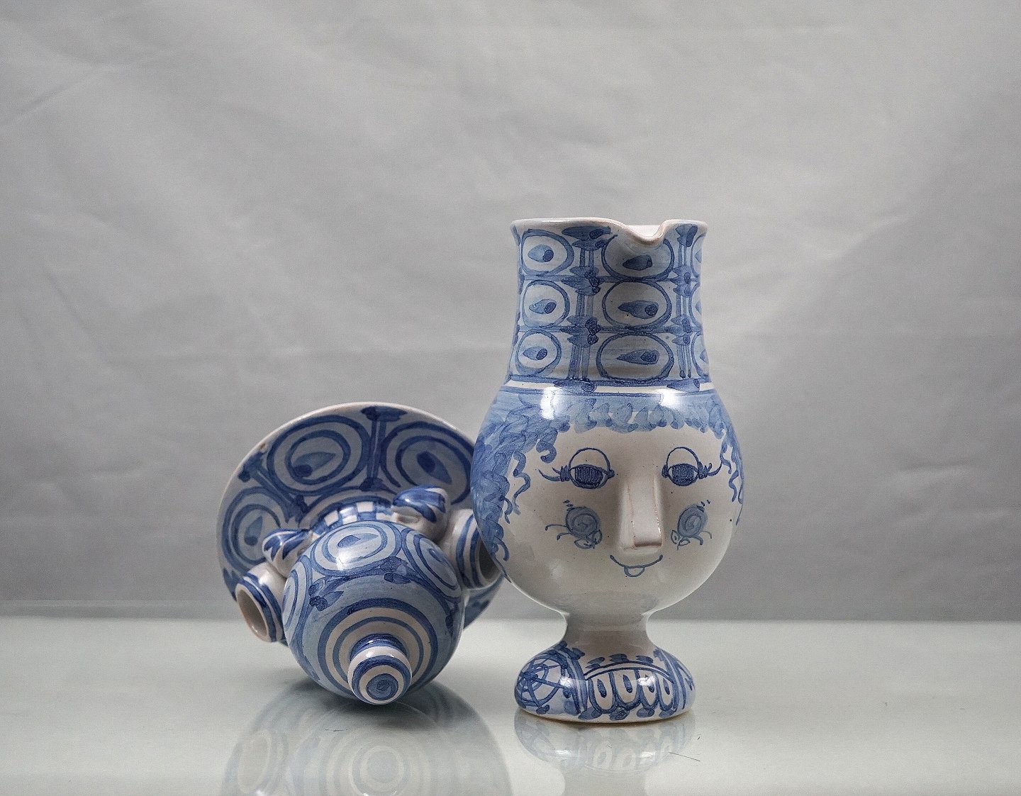 Bjørn Wiinblad, Damehoved med hat, der fungerer som kande med låg, nr K31. Damehovedet er malet med blåt