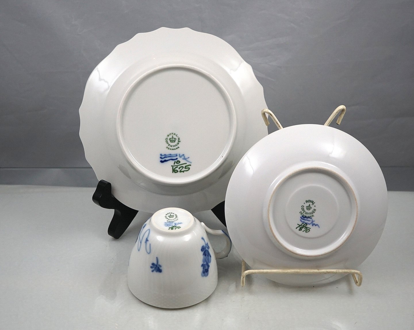 Mål Kop Højde 7,5cm, diameter 6,5cm, underkop diameter 14,5cm, sidetallerken diameter 17cm