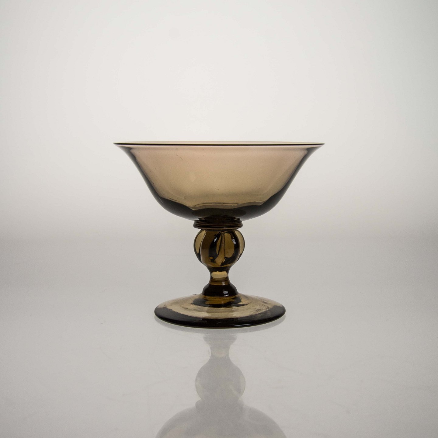 Røgfarvet/brunlige glas med dekorativ fod.