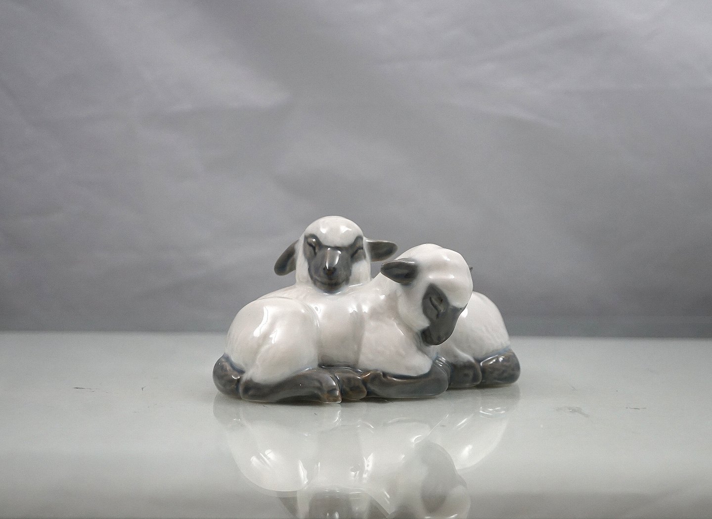 Figur i porcelæn med motiv af to hvilende lam nr. 2769