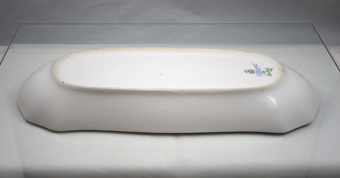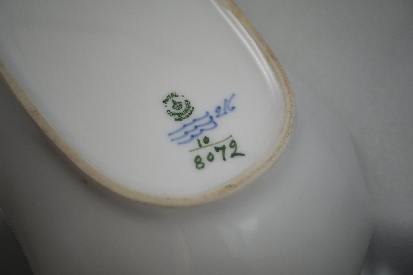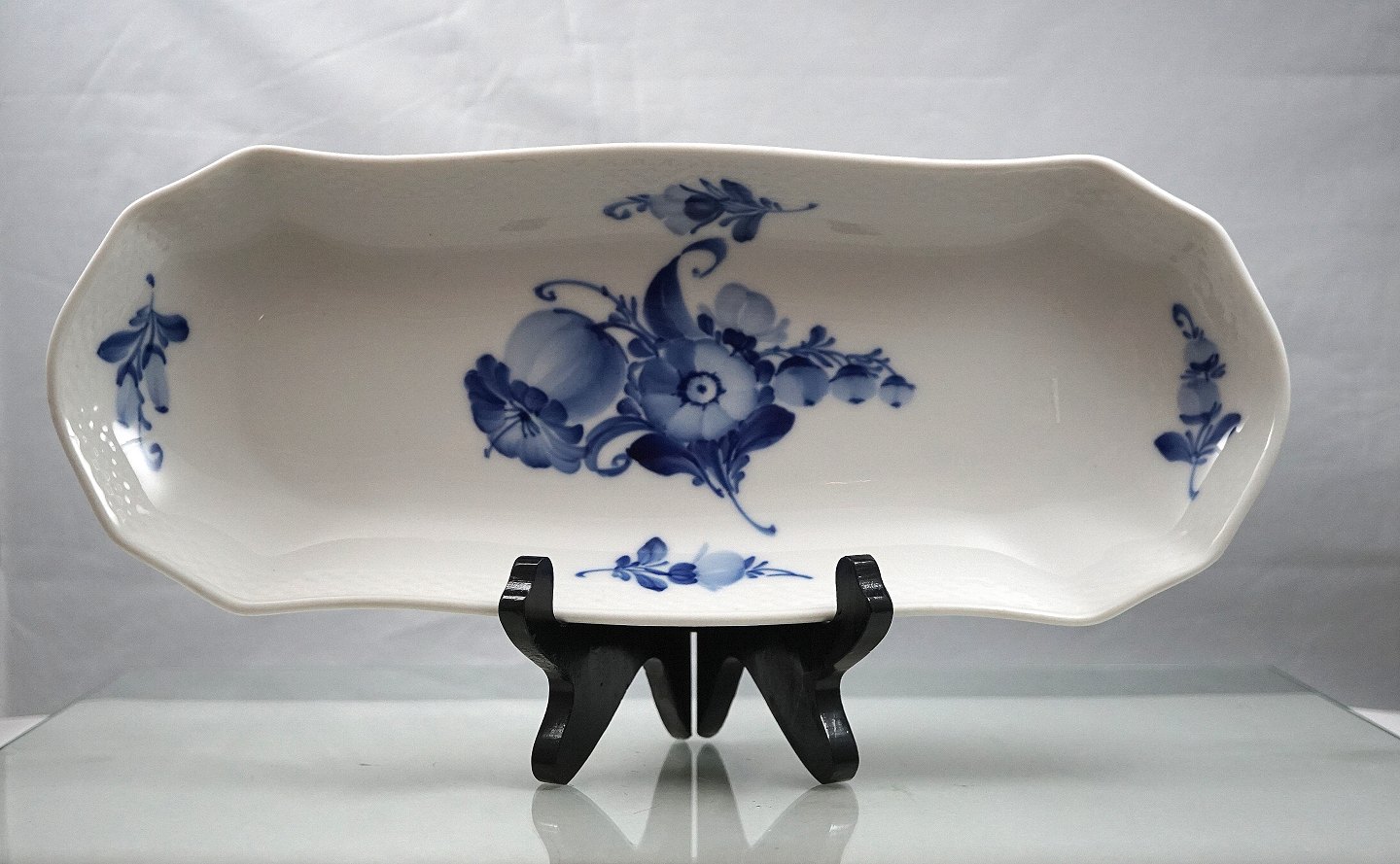 Royal Copenhagen. Blå blomst, nr 10/8072, sellerifad. Sellerifadet er med flettet kant 1. sortering. Arkivfoto