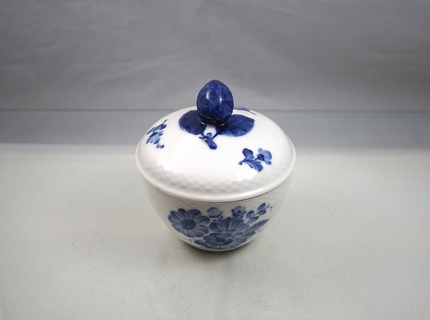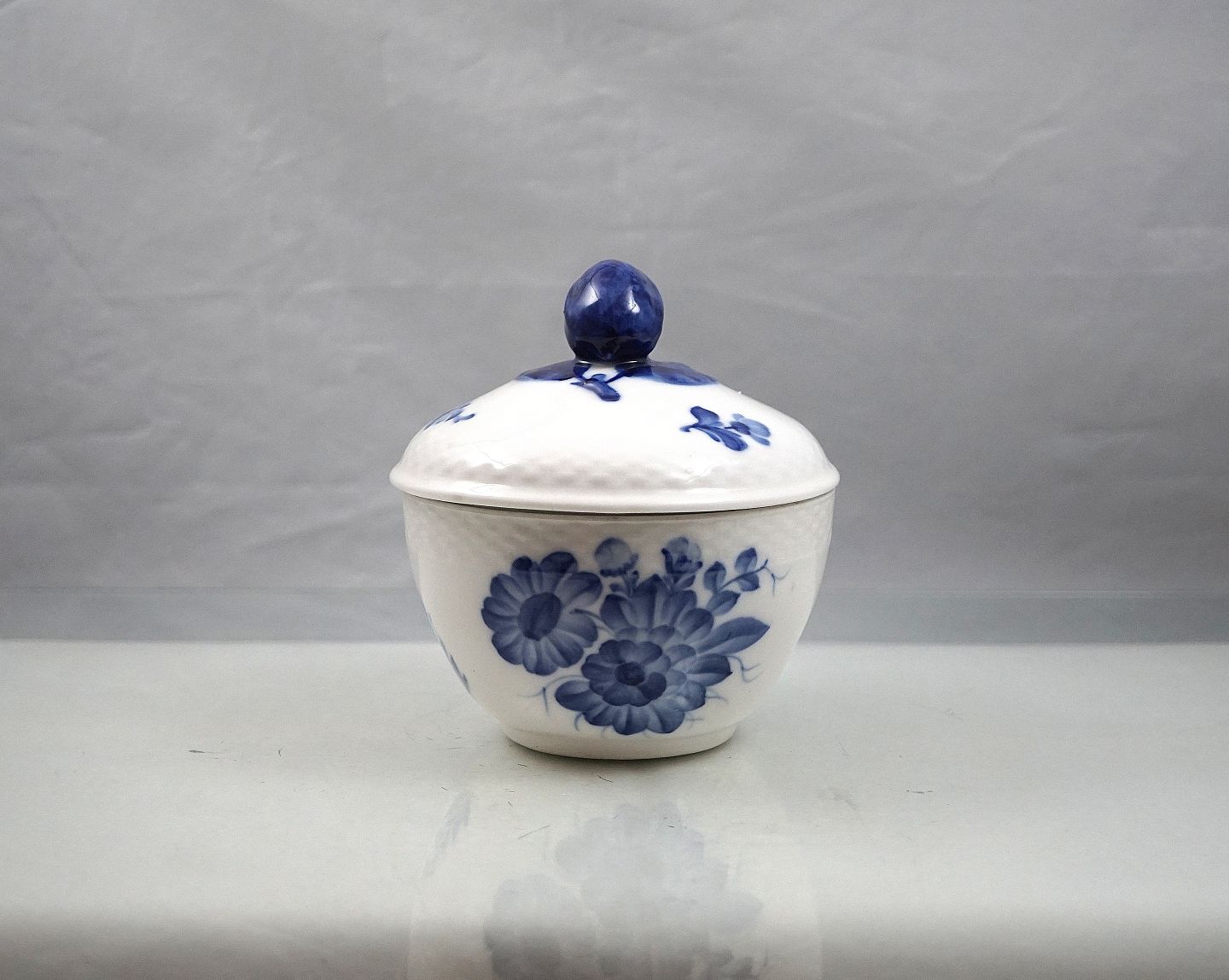 Royal Copenhagen. Blå blomst, nr. 10/8082, sukkerskål uden hank, med flettet kant.