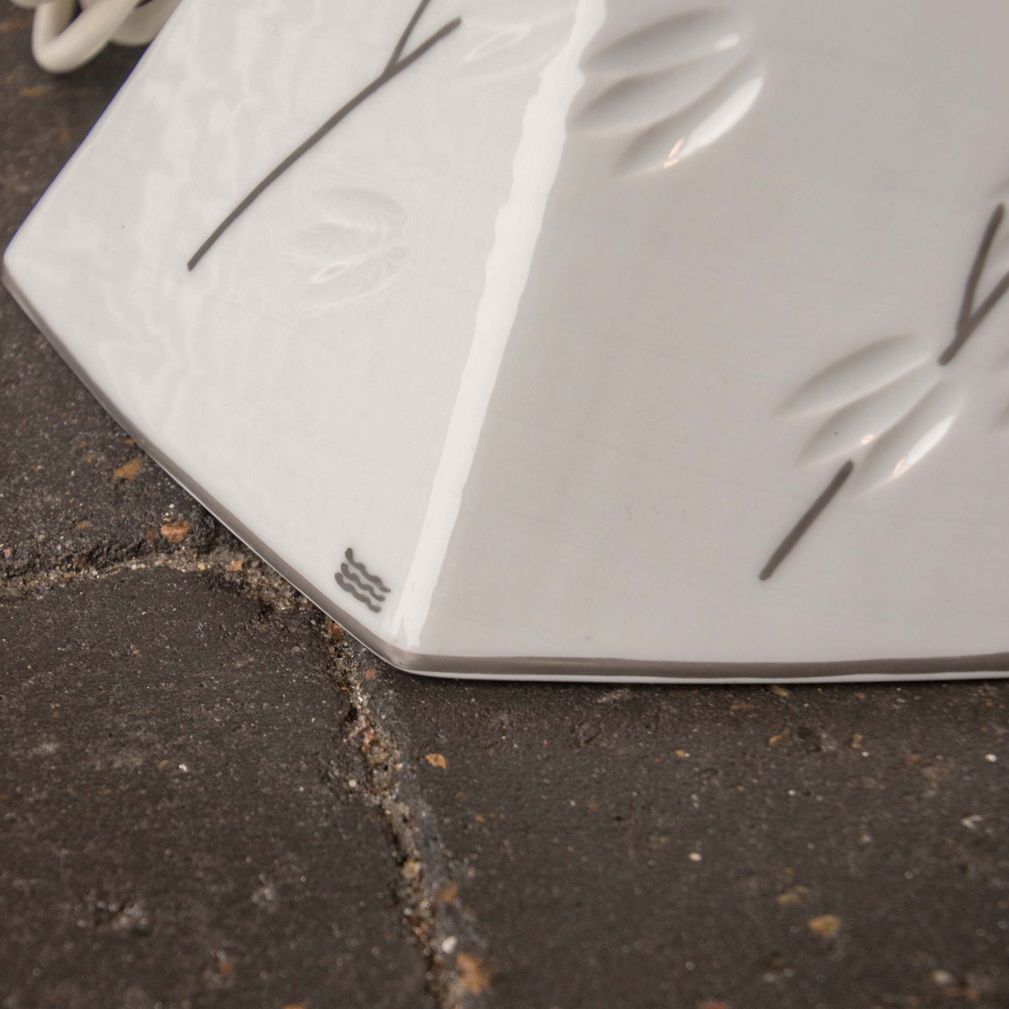 Luciana pendel i hvidt porcelæn med mønster og sølvkant