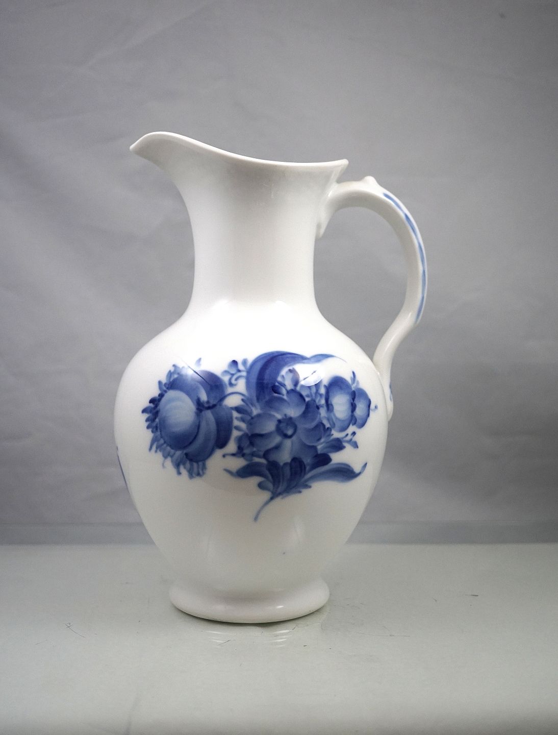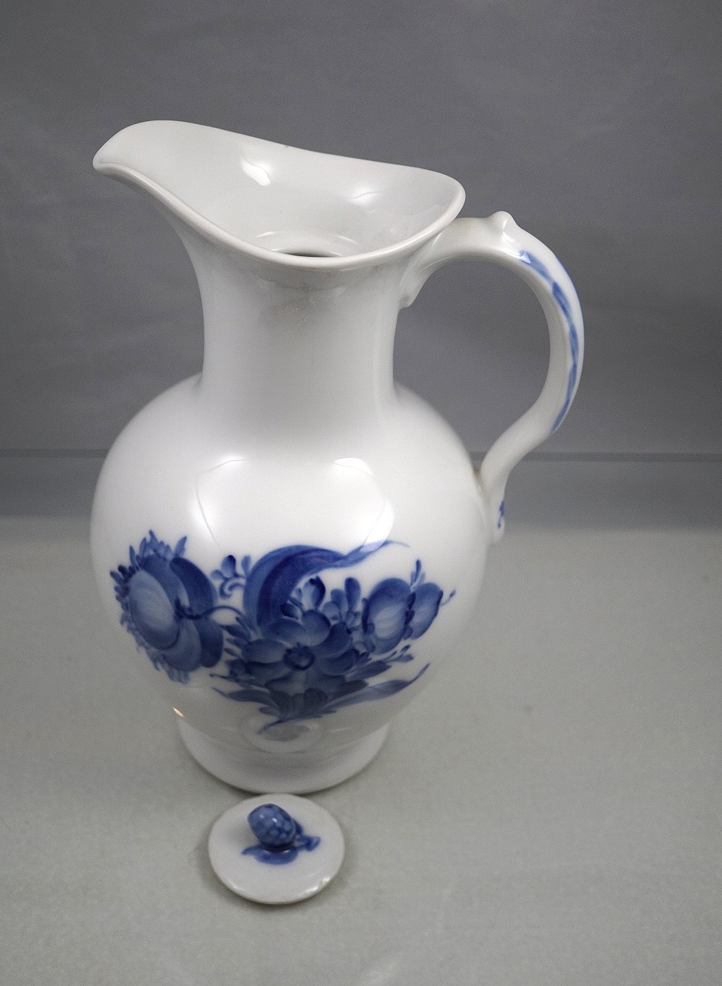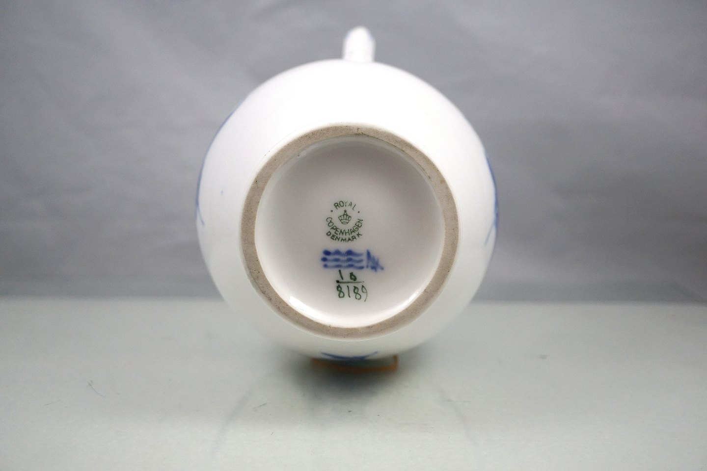 Royal Copenhagen. Blå blomst, chokoladekande. Nr. 10/8189 dette nr. står under kanden, men den er fundet under nr. 10/8147. Kanden har flette kant.