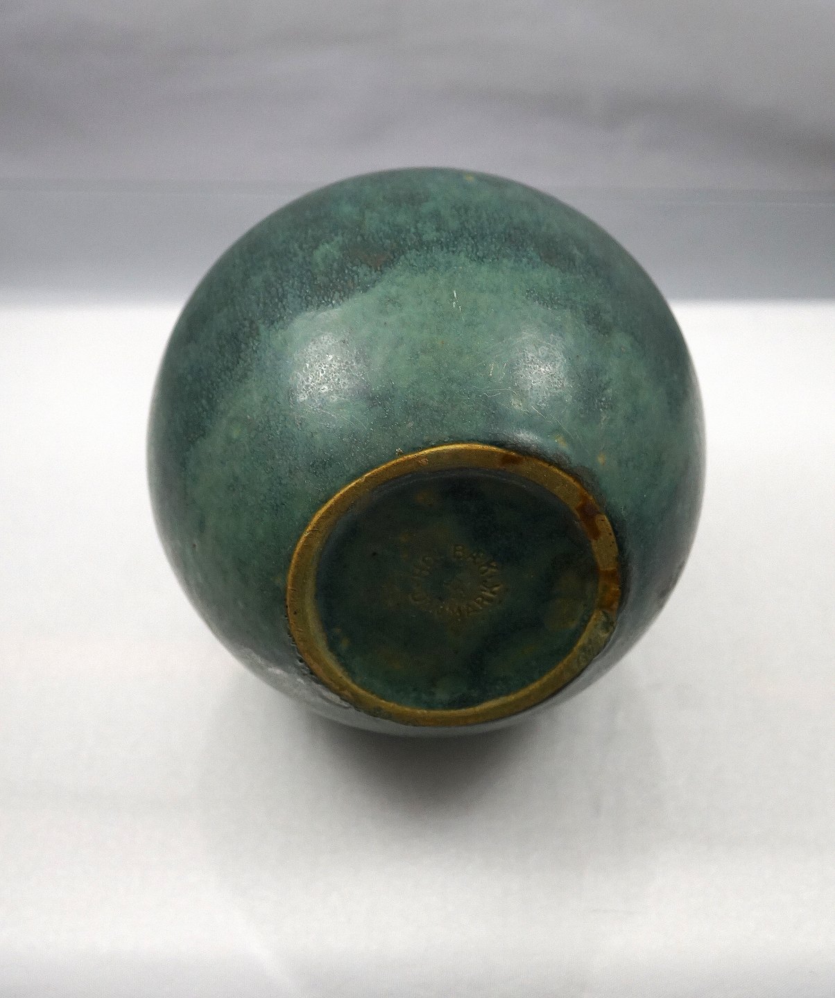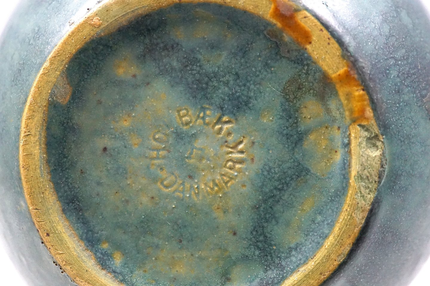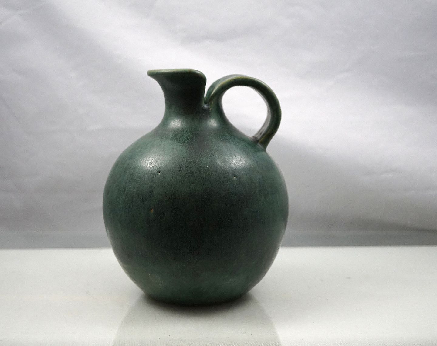 Holbæk vase/kande i keramik, med grønt glasur. Kanden har en bred hældetud og en bred hank